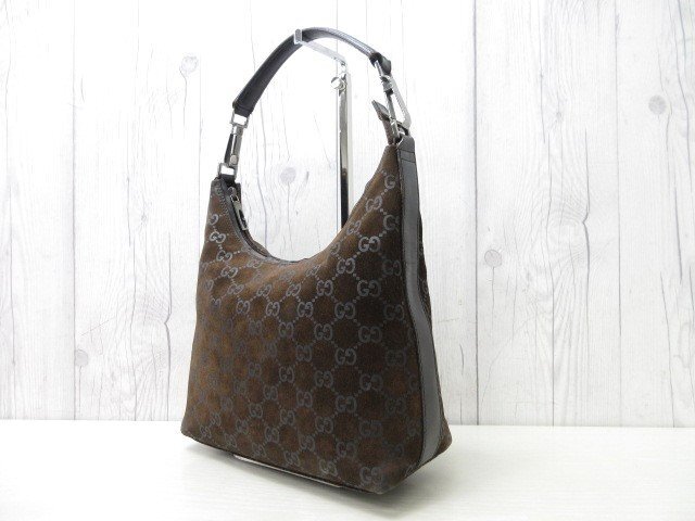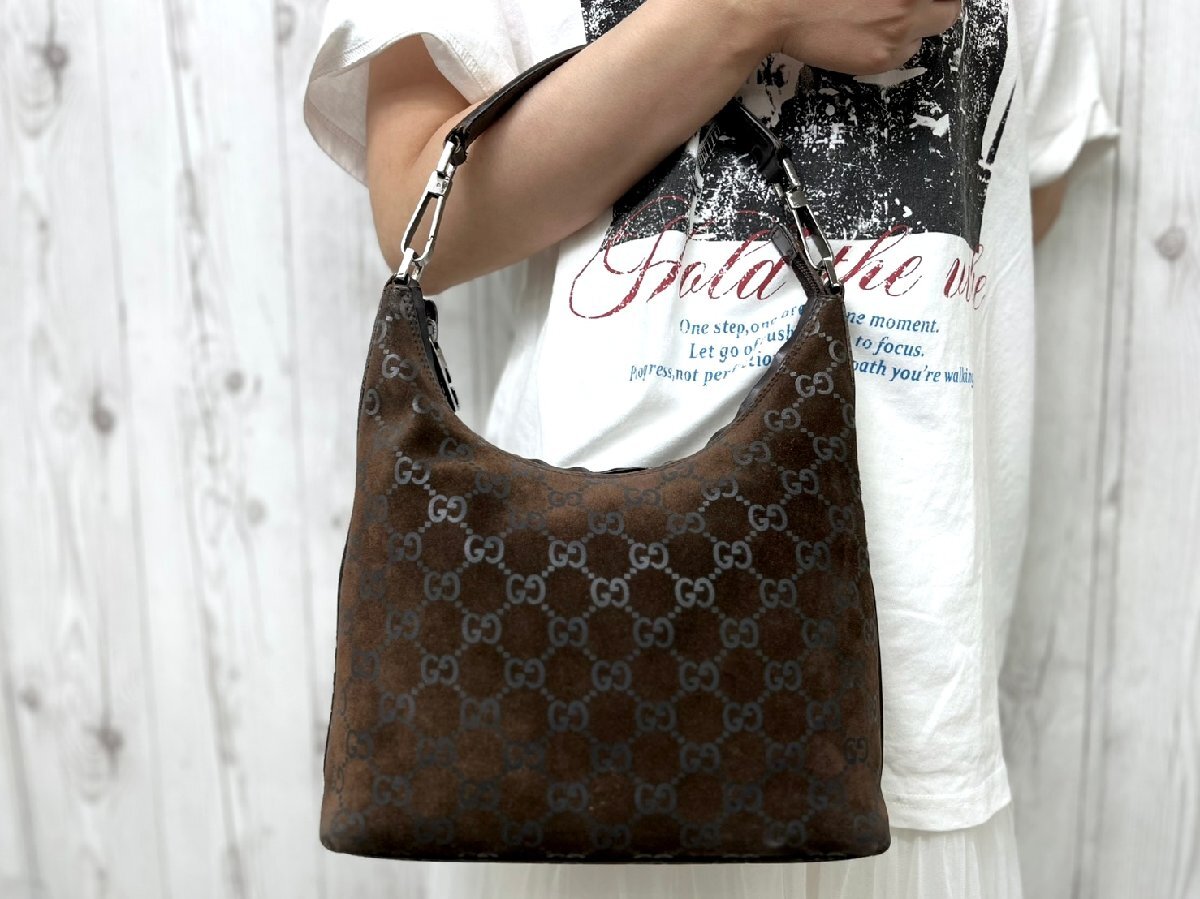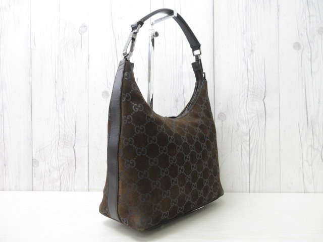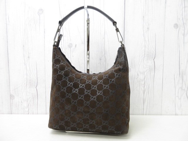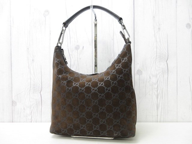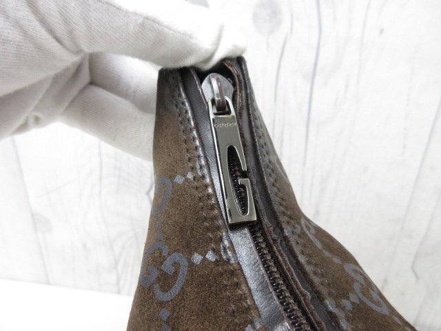 美品 GUCCI グッチ GG柄 ハンドバッグ ショルダーバッグ バッグ スエード×レザー 茶 90187Y | ||