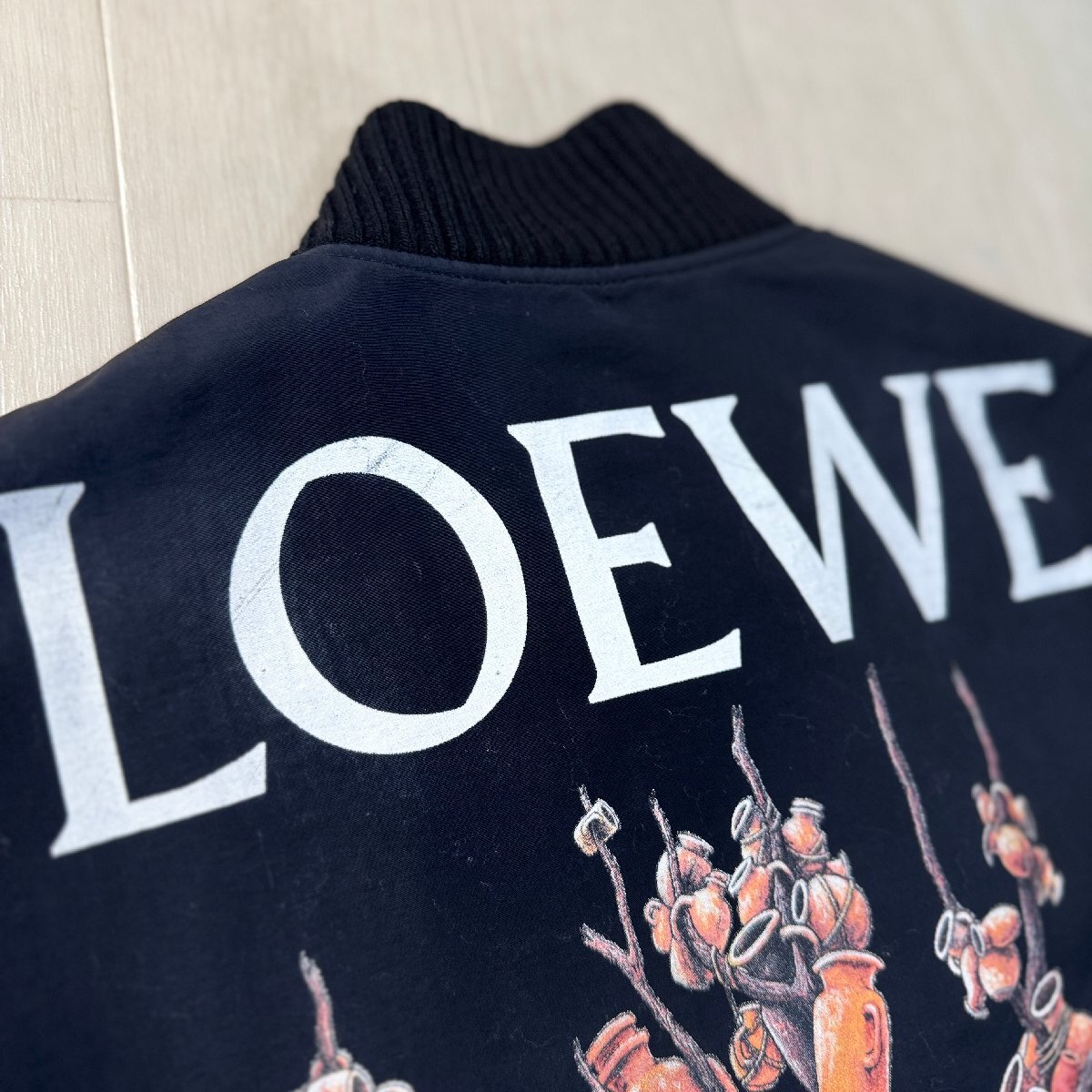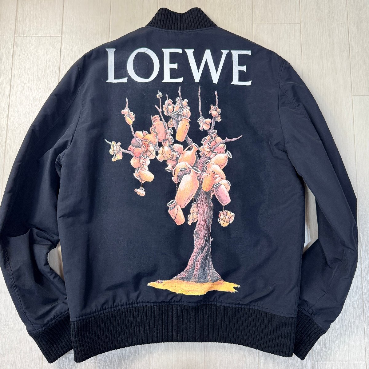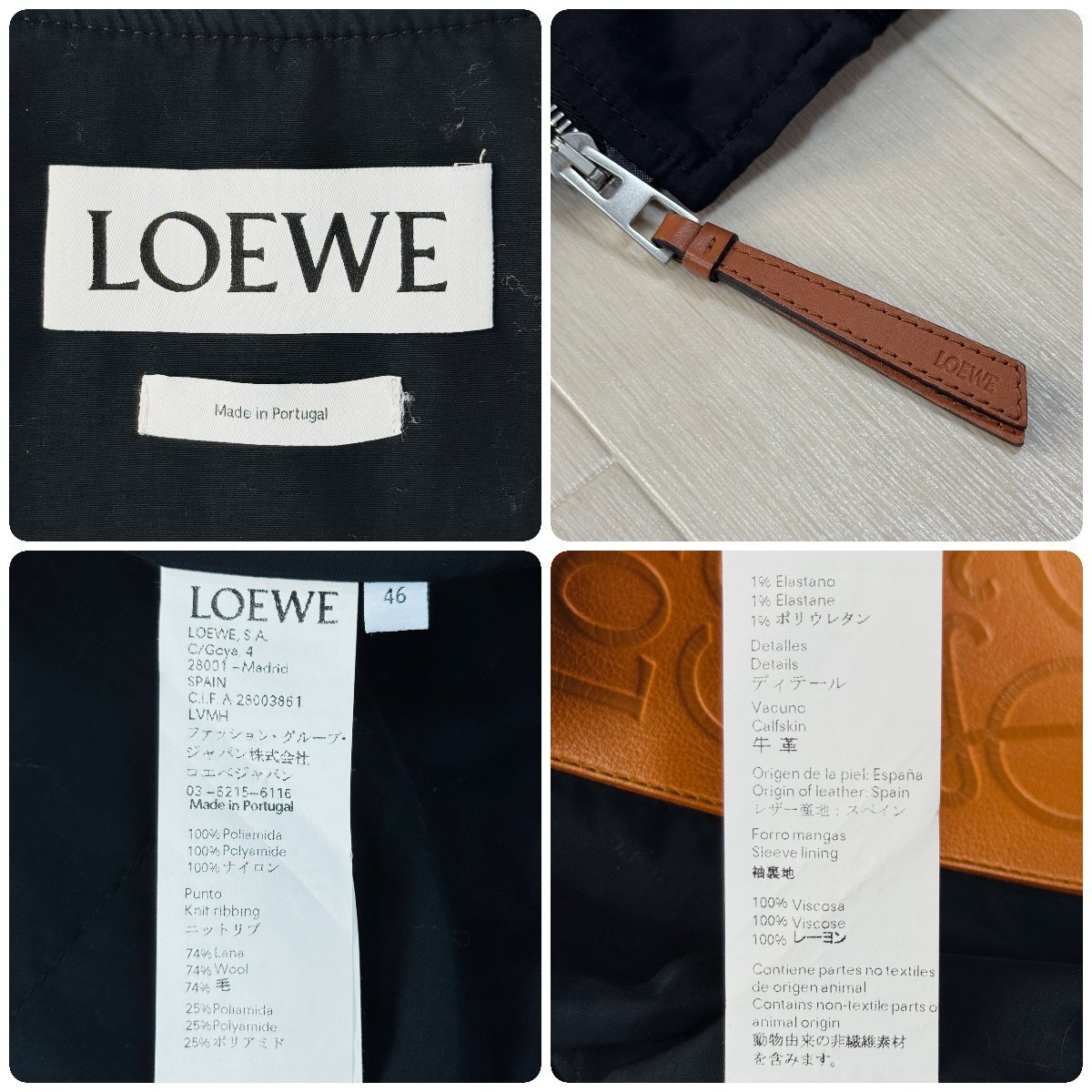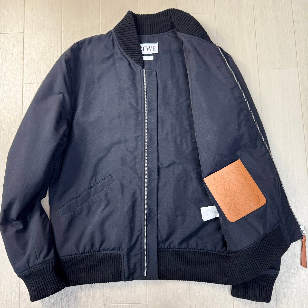 美品/46 M-L相当★ロエベ/LOEWE バックプリント デカロゴ ボンバージャケット ブルゾン アウター アナグラム レザーポケット 牛革 メンズ