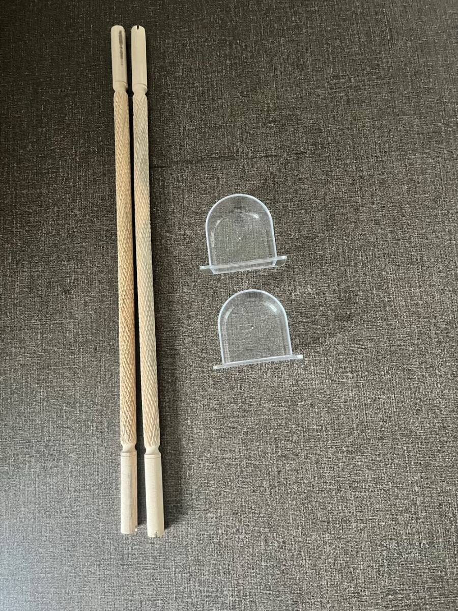 おまけで、画像に有りますステンレス製の止まり棒×2個とステンレス製のエサ箱×2個をお付け致します