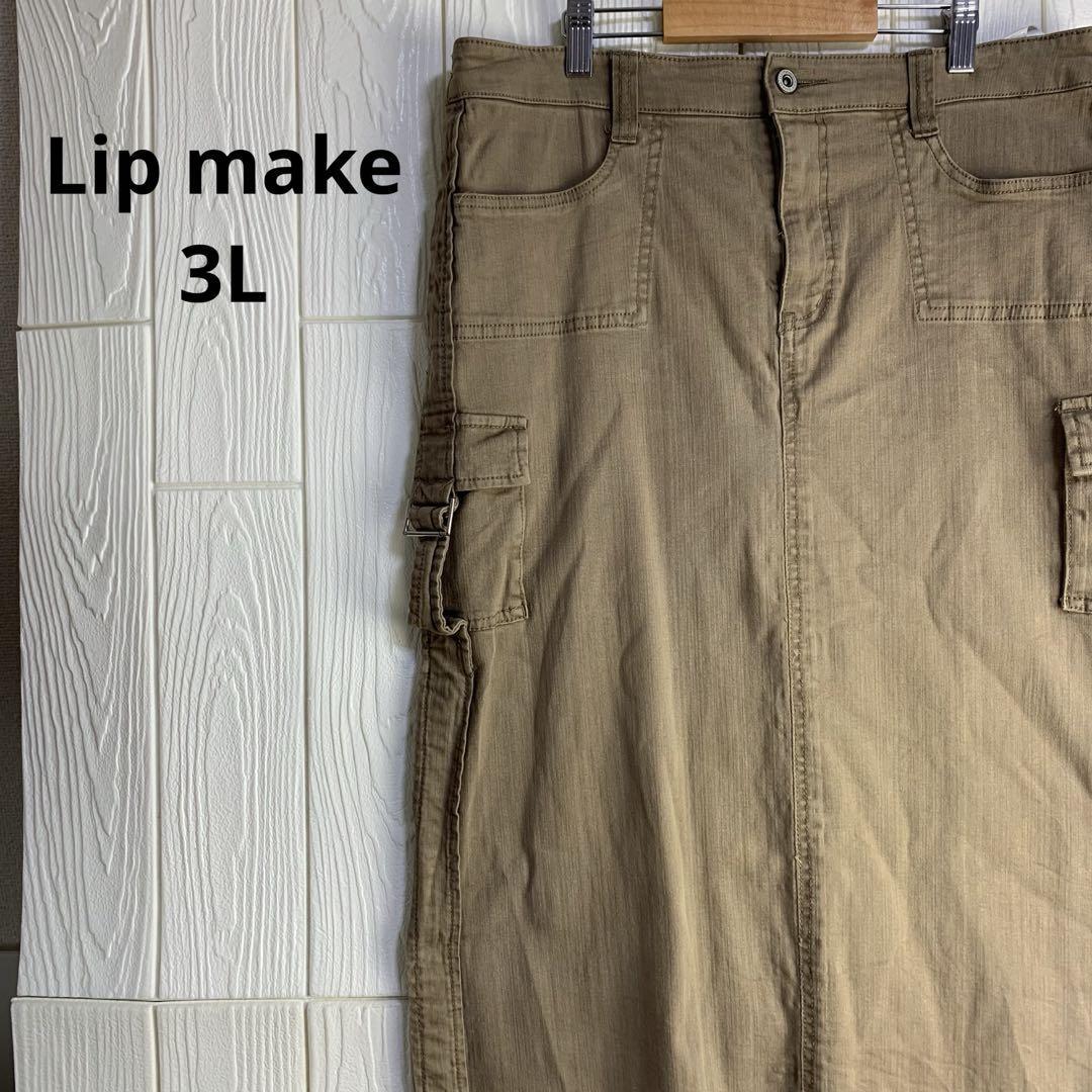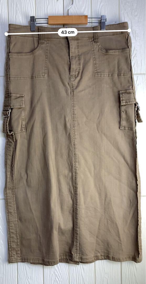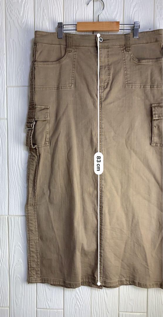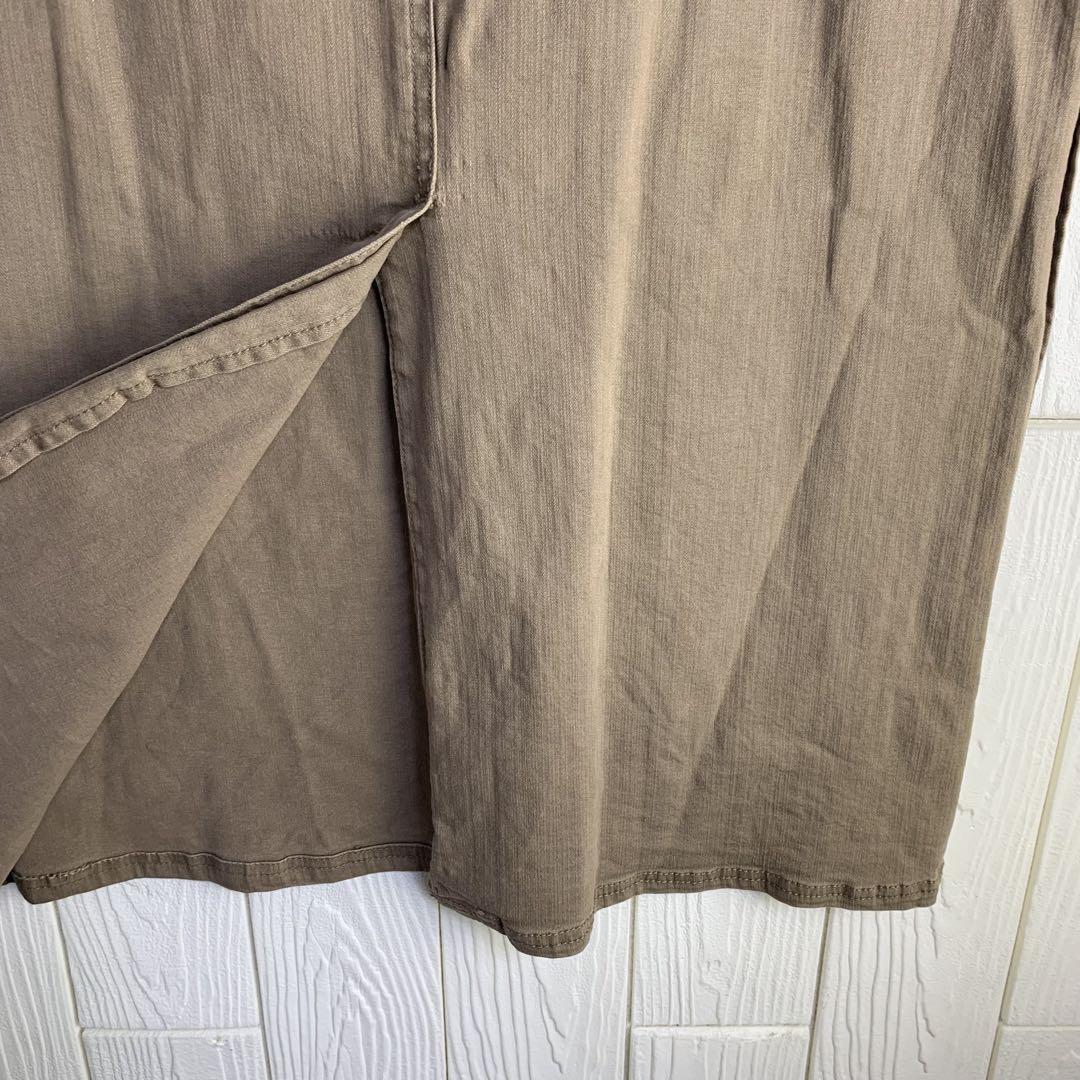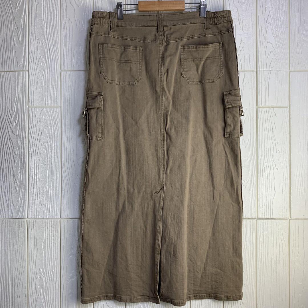 ベージュのタイトスカート、ウエスト86cmのデザインで、サイドポケット付き。