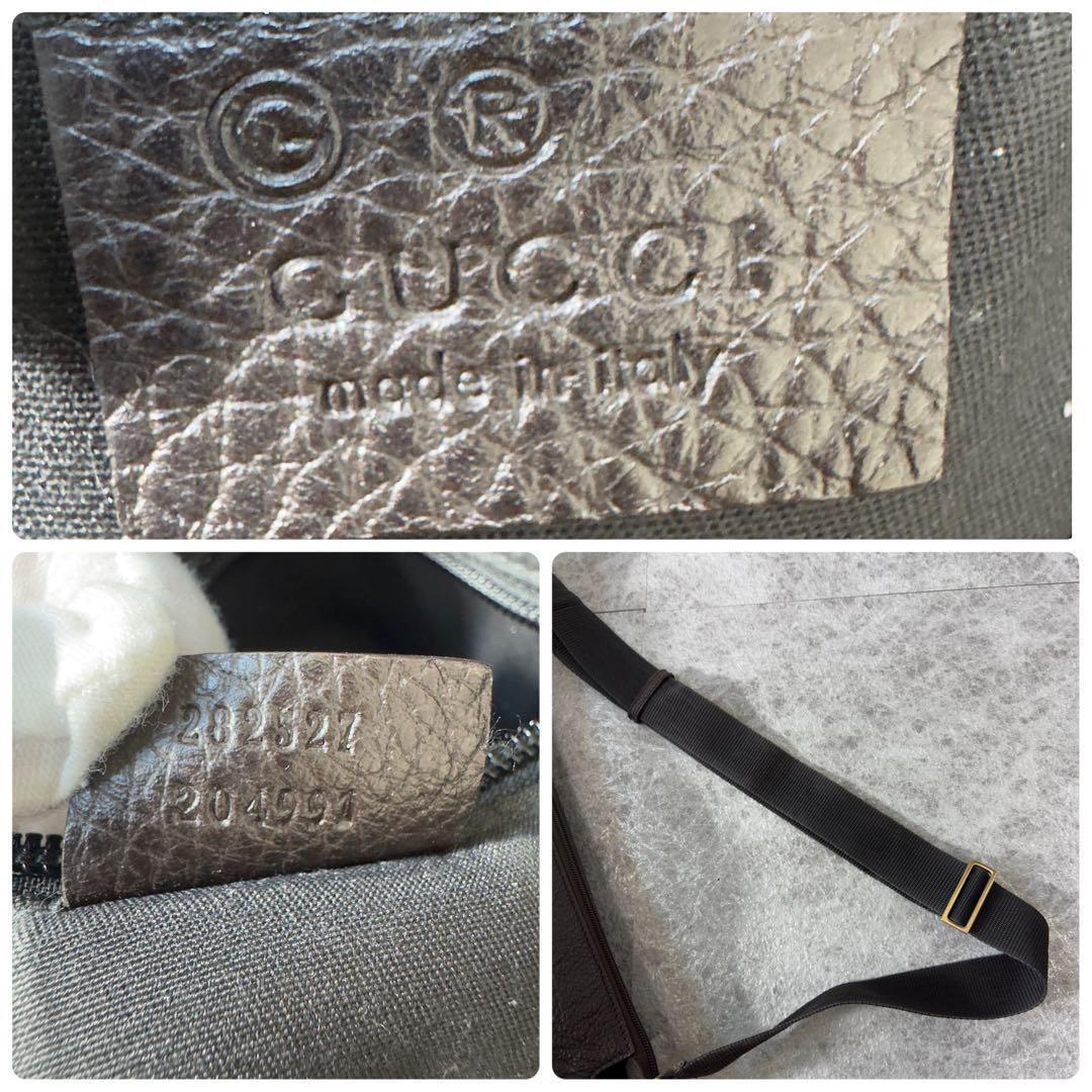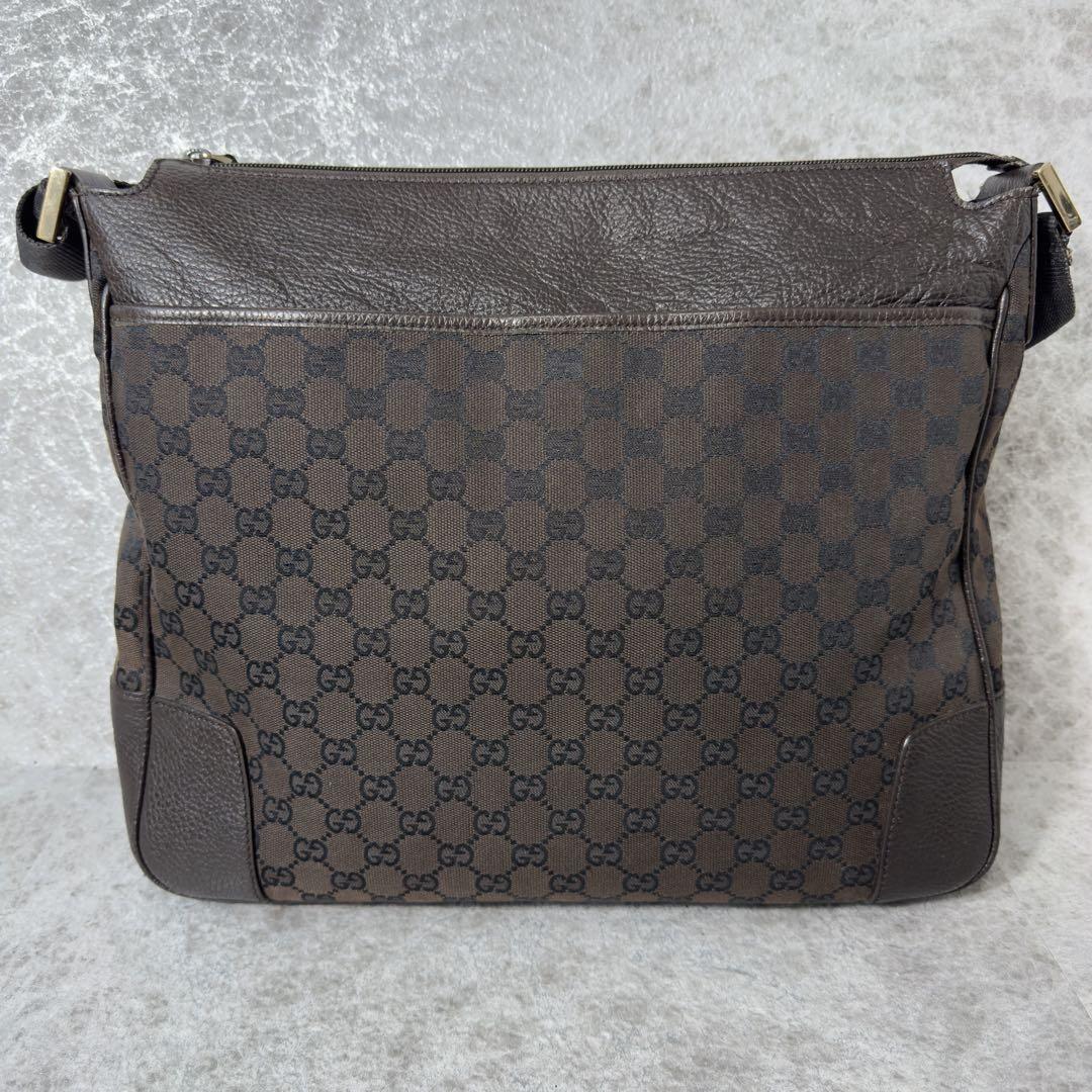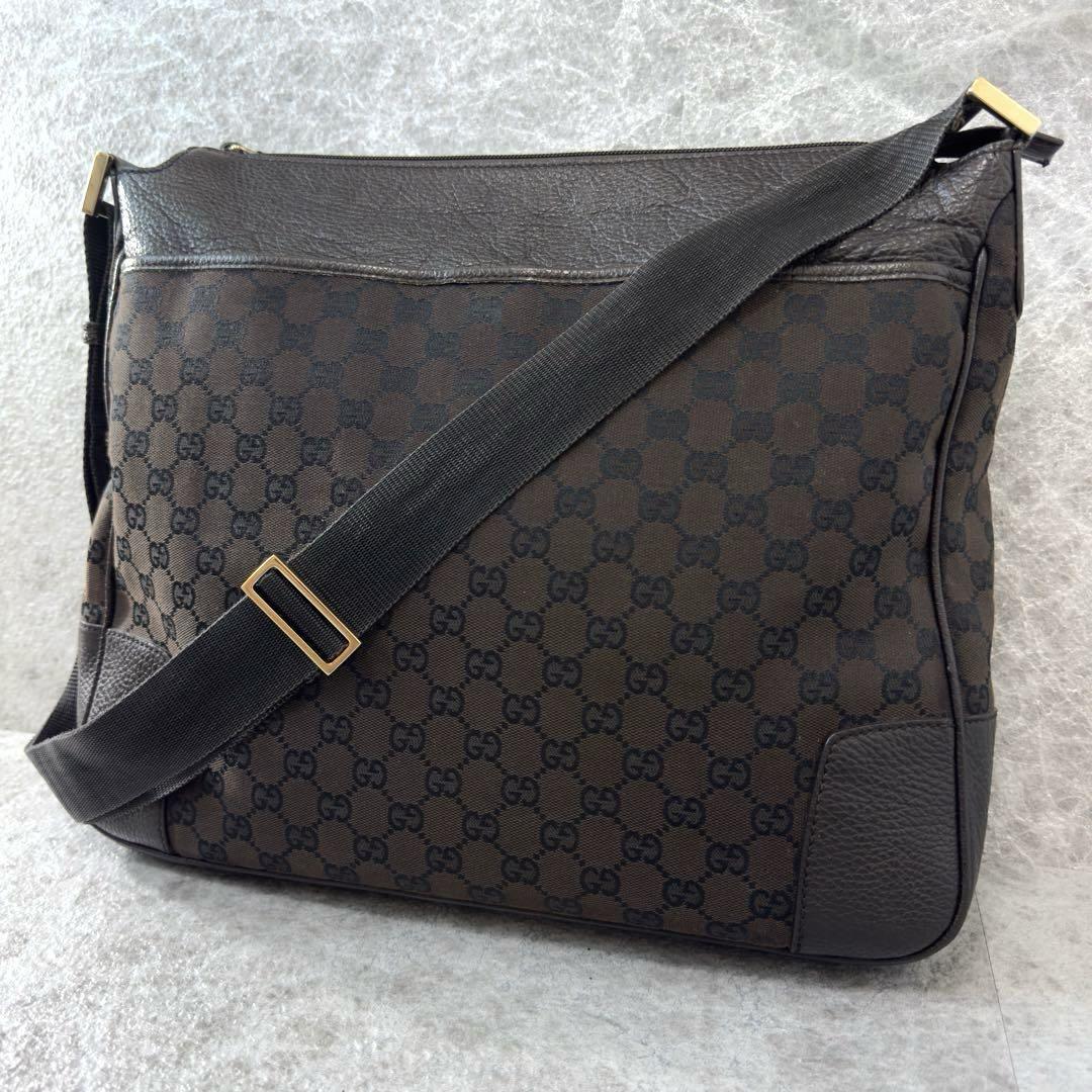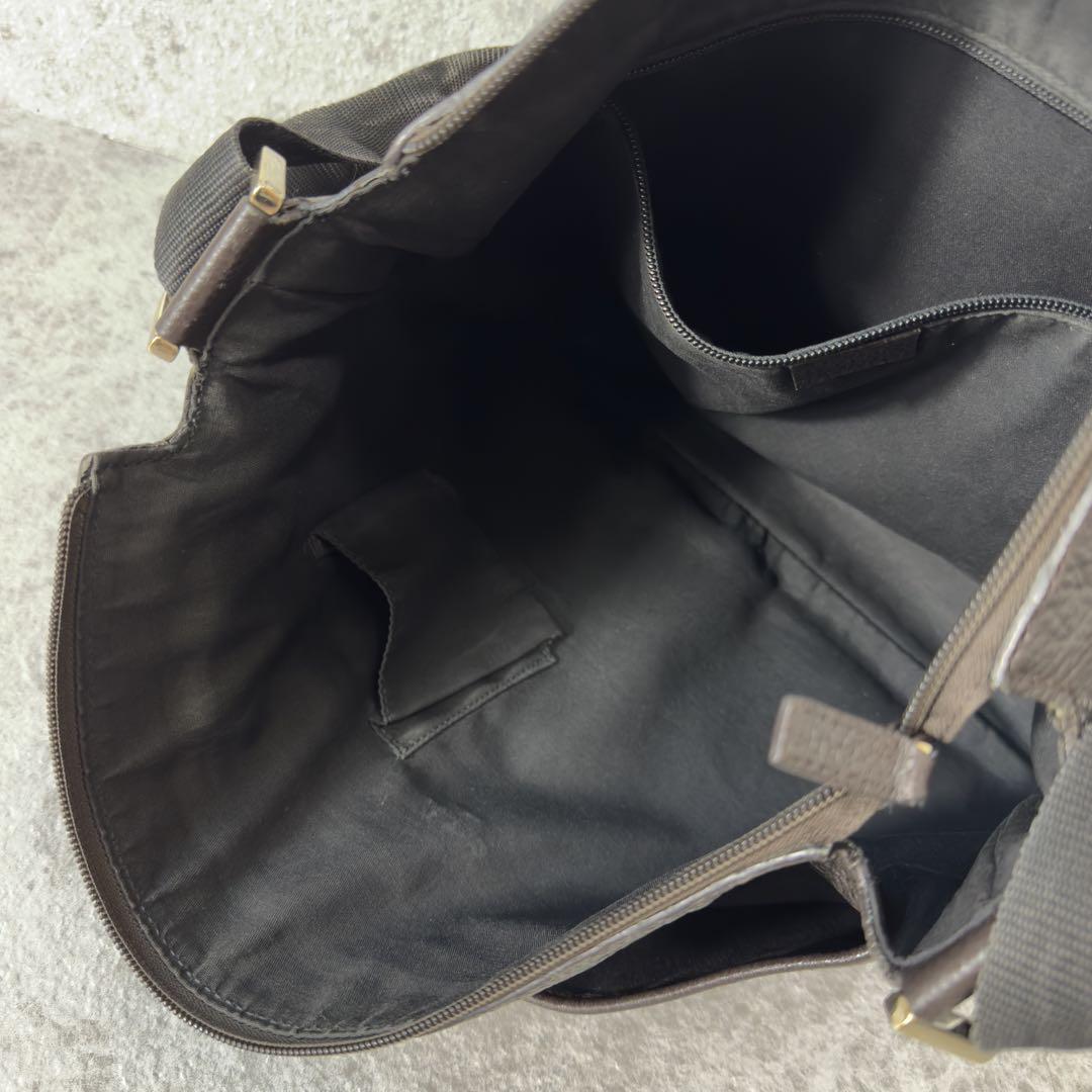 美品 Gucci GGキャンバス レザー ショルダーバッグ メッセンジャーバッグ バック A4収納可能 メンズ 肩掛け 斜め掛け ロゴ グッチ 王道
