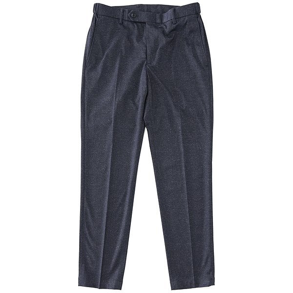 定番のウール見えジャージー素材のセットアップスーツです。 程よい張り感のあるタテヨコストレッチの効いたジャージー素材に、ウール調のマテリアルプリントをすることで、きっちり見えするけど着疲れしない素材を採用しています。 ジャケットは、フロントの着丈を少し長くすることで、着映えするシルエットにバージョンアップ。 すっきりシルエットを採用し、裏地は背抜きの大見返しの袖裏あり仕立てにしており、きれい目上品見えの仕立てです。 スラックスは、すっきりとしたテーパードシルエットを採用し、ウエスト横のゴムシャーリング仕様により、いつでもジャストフィットな穿き心地に仕上がっています。 マテリアルプリントによって適度に表情があるので、ビジネススタイル以外にも合わせやすく、カジュアルな着こなしにも対応できて、オンにもオフにも活躍してくれます。 セットアップとしてだけでなく、上下を別々のコーディネートに投入することで、幅広いスタイリングを可能としてくれる優秀アイテムです。 【ジャケット】 ・背抜き仕立て ・フロントは2つボタン ・センターベント ・袖先は3つボタン(開き見せ) 【スラックス】 ・ノータック ・ジッパーフライ ・テーパードシルエット ・ウエスト横にゴムシャーリング入り |