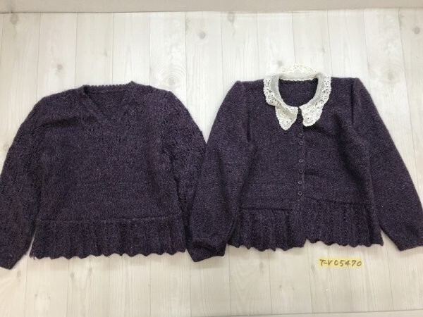 レディース ハンドメイド風 Vネック ニットセーター・カーディガン アンサンブル セット 紫 です。