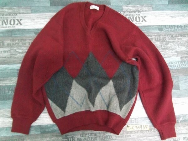 Arnold Palmer アーノルドパーマー メンズ Vネック アーガイル ニットセーター M エンジ です。