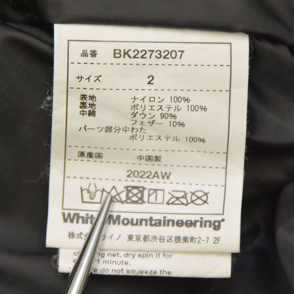 ホワイトマウンテニアリングの2022AW GORE-TEX DOWN JACKET ゴアテックスダウンジャケット BK2273207です。