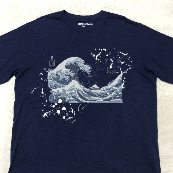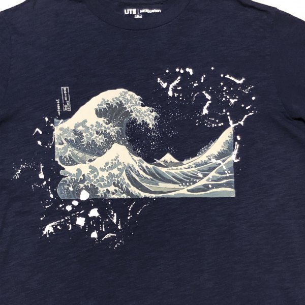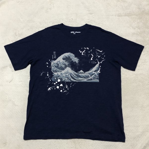 ユニクロ 北斎 アート・オブ・ウォーター UT グラフィック 半袖Tシャツ クールネック ネイビー XLサイズ
