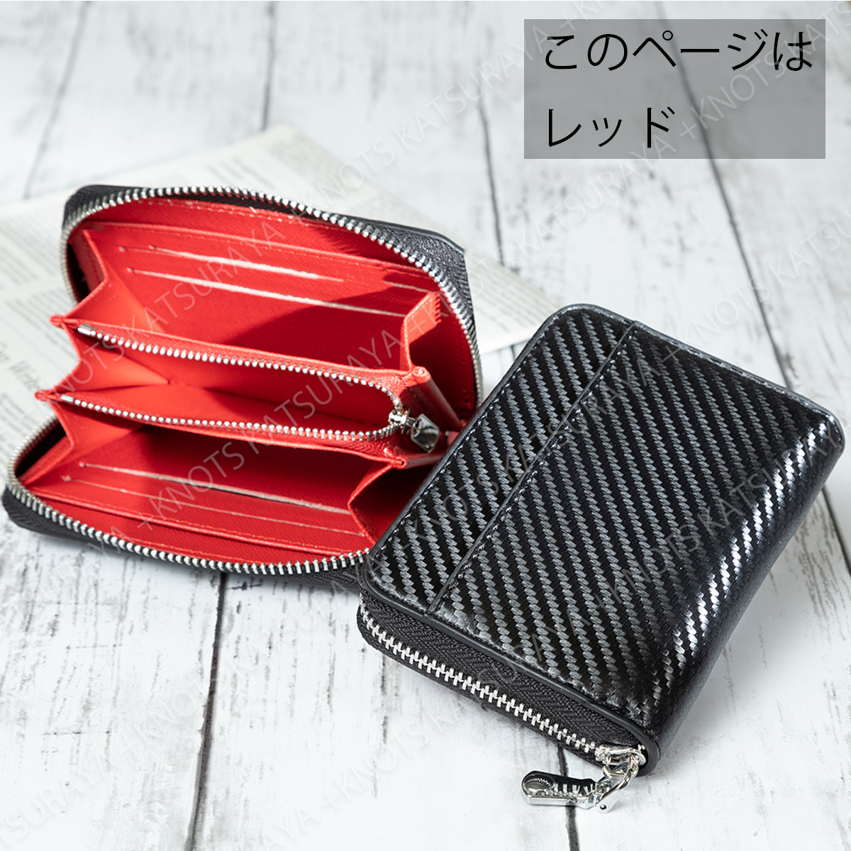 カーボンレザー ミニ財布★レッド★小銭入れ メンズ レデース 小さい 小型 コンパクト ラウンドファスナー ジップ 財布 本革 レザーa250
