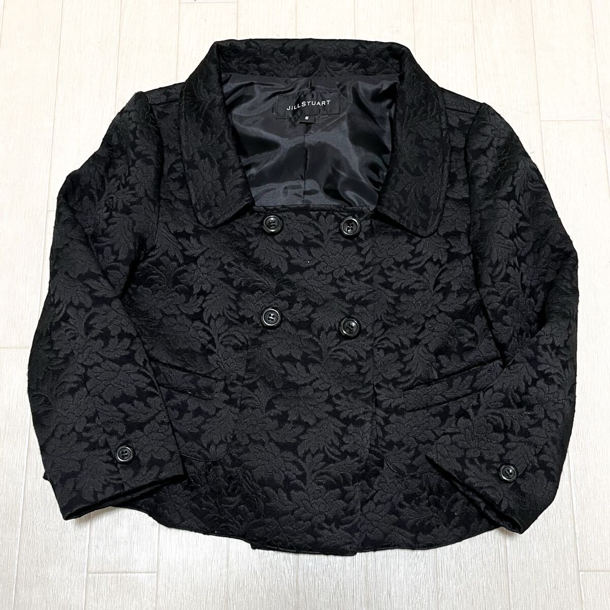 和852★ JILL STUART ジルスチュアート ジャケット ダブルボタン 総柄 S ブラック レディース
