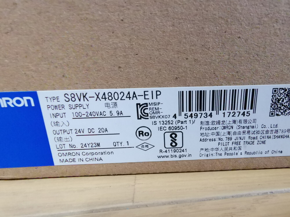 OMRON 24V 大容量20A/480W スイッチング電源 S8VK-X48024A-EIP の新品です。