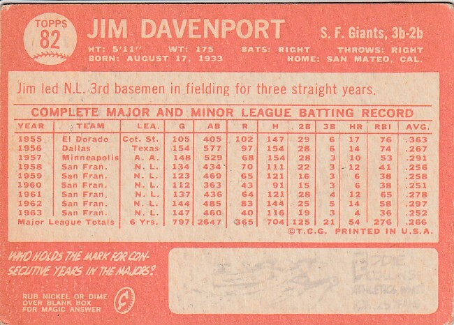 Jim Davenport 1964 Topps 82