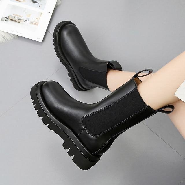 レディース 秋新作 ブーツ サイドゴア ロングブーツ ショートブーツ ミドル 長靴 厚底 シューズ 秋 ブラック(ロング)23.5cm