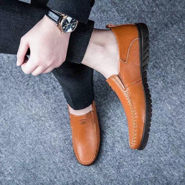 シューズ 革靴 ウォーキングシューズ ビジネススニーカー 通勤シューズ スリッポン 滑りにくい グリップ 履きやすい 防水 ブラウン 25.0cm