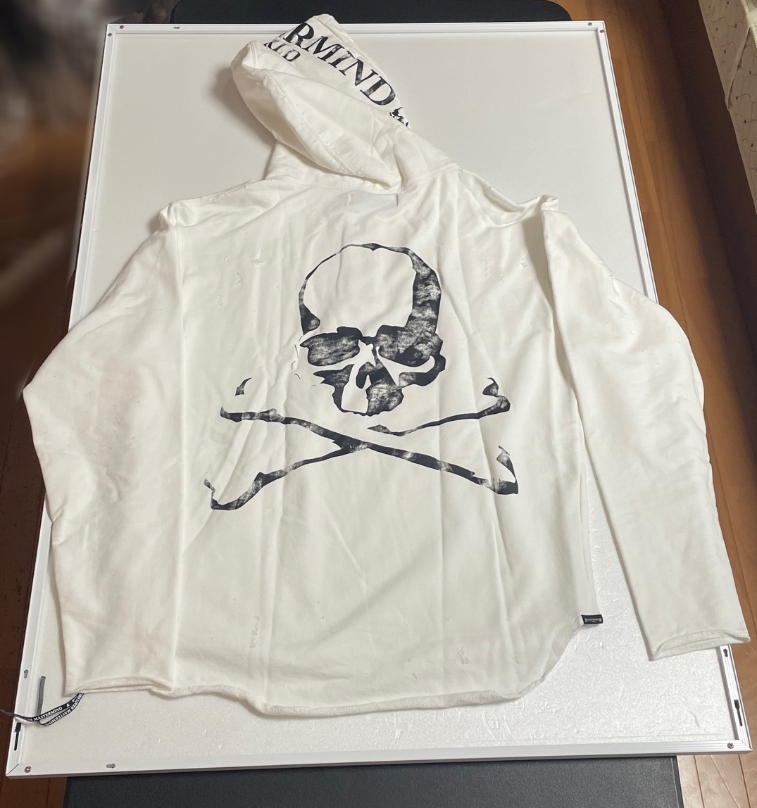・フード部にブランドロゴ、背面にスカル、ともに掠れ加工