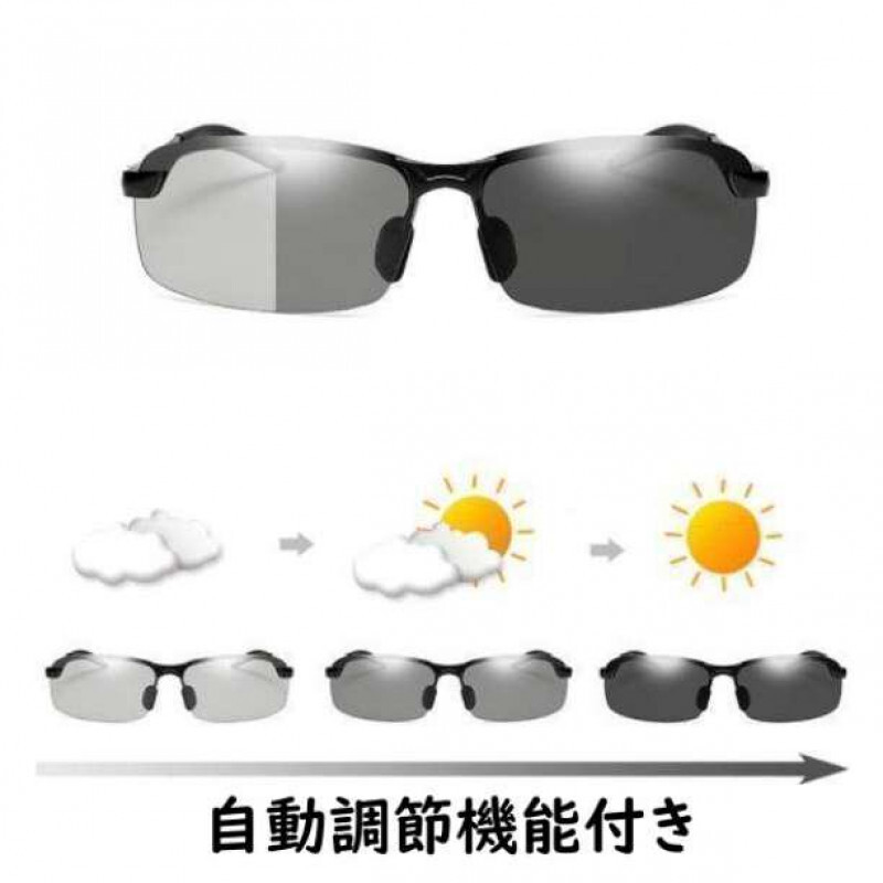 ご覧いただきありがとうございます! ★新品 未使用 送料無料★ ・コメント無し即買い大歓迎♪ ・「値引交渉」はご遠慮ください ・ 偏光レンズ 偏光機能レンズの働きで光の反射を抑えてスッキリとした視界を確保。 特にルアーフィッシング等では水中もよく見えるので正確なポイントへのキャストには必須のアイテム!水面の反射を抑えて視覚から入る情報をストレス無く見ることが出来ます。 ・ 調光レンズ 紫外線を浴びる事でレンズの色が濃く変化します。 ドライブ キャンプ 釣り ロードバイク ランニング 車 バイクなど、アウトドアに最適なレンズ! ・ ジャストフィット ヒンジが130°まで広がるため圧迫感なくノンストレスに装着可能です。 軽量素材のため、1日中掛けていても苦になりません。 ・ ライフスタイル 屋外・屋内とレンズの色が自動で切り替わり大活躍するアイテムです! おしゃれなデザインのため、普段使いにも最適です! ・紫外線カット99%のUV400 ・紫外線から来る眼病予防にも最適! ・ゴルフやジョギング等のスポーツ時に! ・ドライブ時のガラスの反射抑制。 ●アルミニウム+マグネシウム合金が軽量、耐久性 抜群です。 ●ヒンジ部分が130度まで広がるので違和感の無い装着感。 ●ラテックス製の鼻パッドは調整可能 カラー: ブラック 黒 レンズ: グレー 重量 : 約25g ■配送方法:日本郵便 ※郵便物としてポストに投函(ポストに入らないものは配達)されます。 ※ポストに入らない場合、ご不在票が投函されます。 ※封筒(簡単な梱包)、宅配用ビニール袋でのお届けになります。 ※早めの発送を心がけていますが、普段仕事をしているため1日〜2日お時間を頂く事があります。 【注意点】 ■海外製品のため、日本のショップのように完璧をお求めの方、神経質な方はご購入をご遠慮ください。 ■実物の画像を載せておりますが、ロットによって仕様が変更となる場合もございます。 ■最安値でのご提供の為、おまとめ割引・お値引きには対応しておりません。 ■ご購入の時点で説明文、プロフィールは確認済みとして取引を進めさせていただきます。