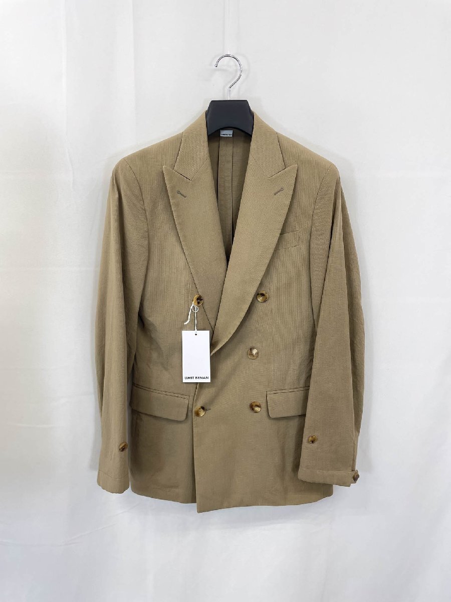 美品【ウミットベナン Umit Benan】ZUM0023 96-07-53-07005 ダブル6ボタン ピークドラペル コットンジャケット(メンズ)44 茶系◇17MB4964◇