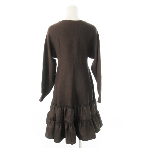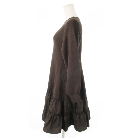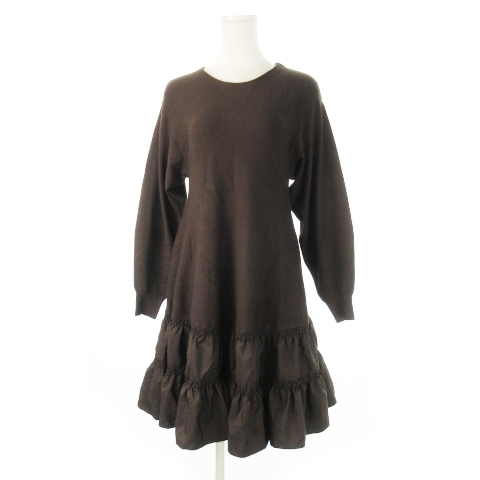 アプワイザーリッシェ Apuweiser-riche ドッキングワンピース ミニ 長袖 ニット もっちり 切替 ギャザー 1 S 茶 ブラウン