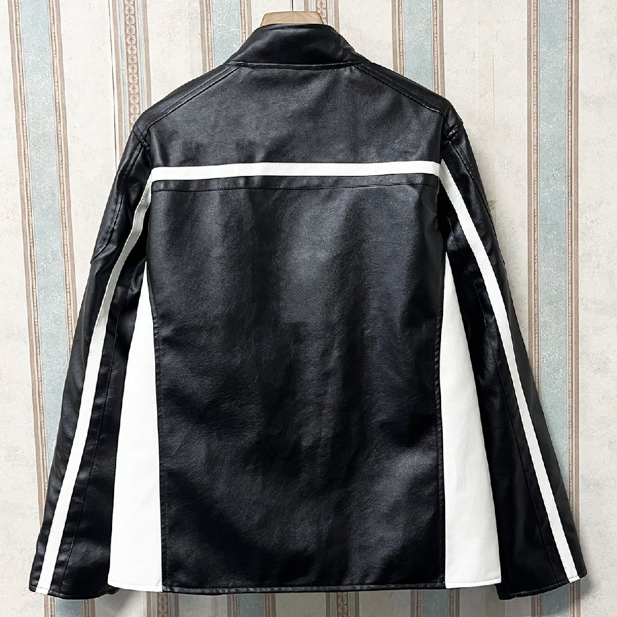 人気 定価12万 FRANKLIN MUSK・アメリカ・ニューヨーク発 レザージャケット PUレザー 防水 防風 切替 立ち襟 スポーティー ライダース バイク サイズ4
