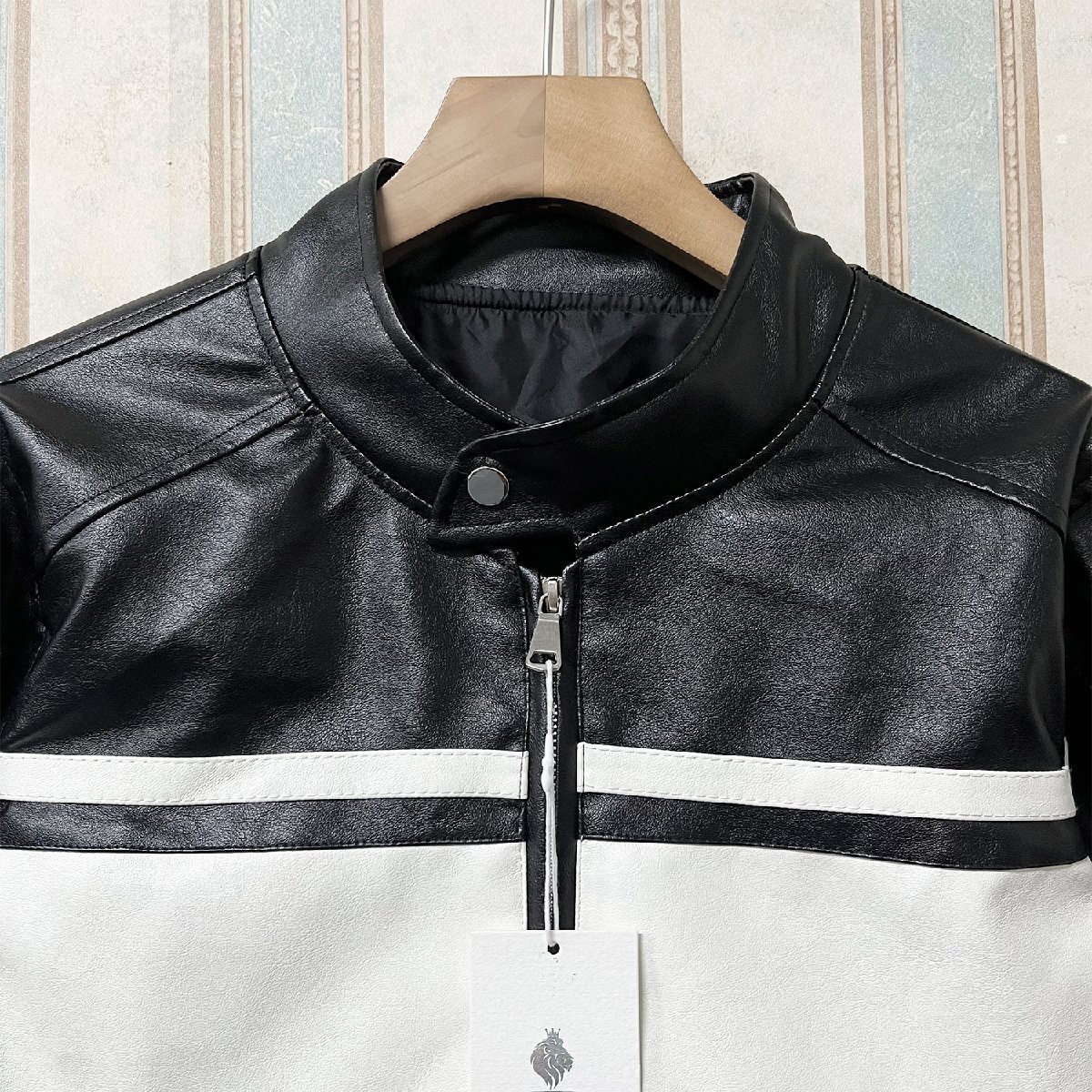 人気 定価12万 FRANKLIN MUSK・アメリカ・ニューヨーク発 レザージャケット PUレザー 切替 立ち襟 スポーティー ライダース バイク サイズ4