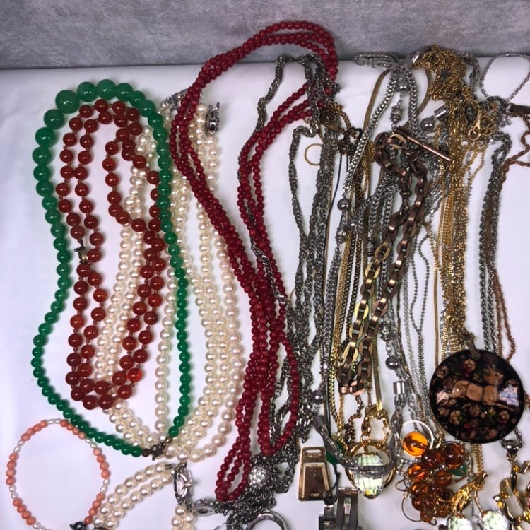 〇メッキアクセサリー まとめ パール ネックレス ピアス ブレスレット 他 まとめ 重量:約1780.68g(袋等含む) 〇商品の状態:やや傷、汚れ、使用感等あり ※詳しくは画像をご参照ください。