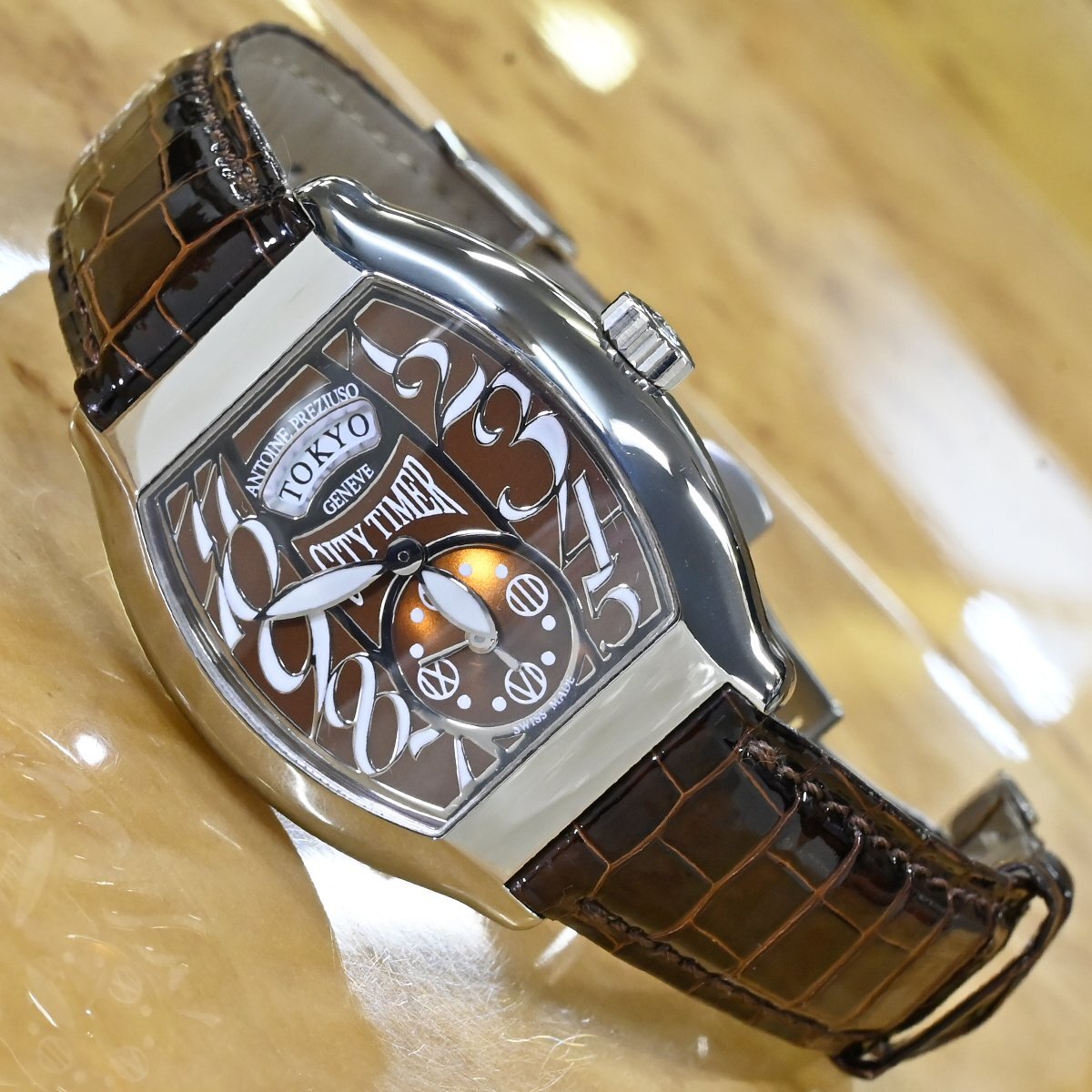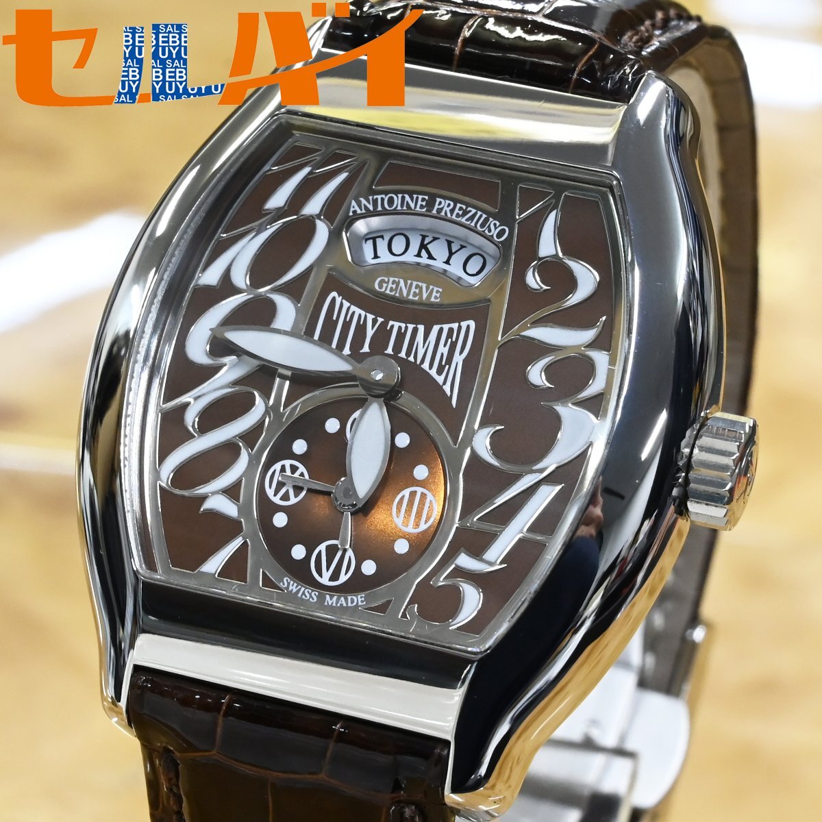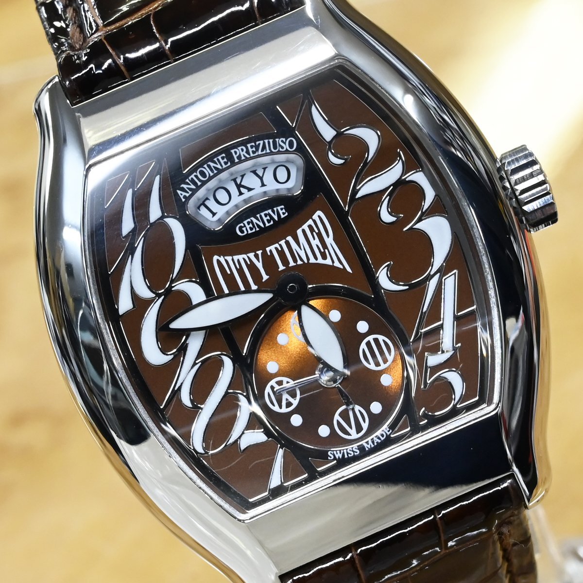 アントワーヌ・プレジウソのシティータイマーです。 独自の2タイムゾーン機構を搭載したコレクション「シティータイマー」。 12時位置に都市名表示をデザインし、一目でセカンドタイムゾーンの確認が可能な極希少モデルです。 市場流通量の圧倒的に少ないメゾンのお品なのでお探しの方も非常に多いかと思います。 ※基本動作確認済。 |