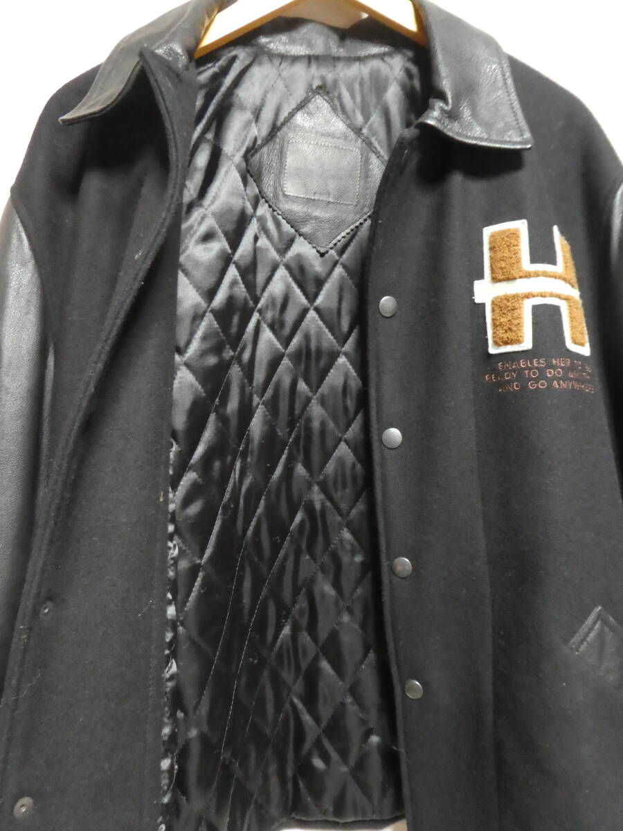 ・90年代付近のハイスポーティングギアのスタジャンになります。袖レザーで厚みのあるウールボディの丈も長めのコーチジャケット風のデザイン性の高い一枚です。近年は現存する個体も少ない中、ブラックカラーはなかなか出てこないかと思います。