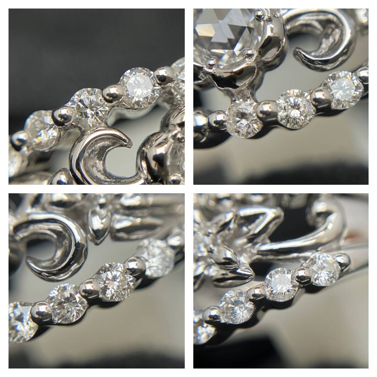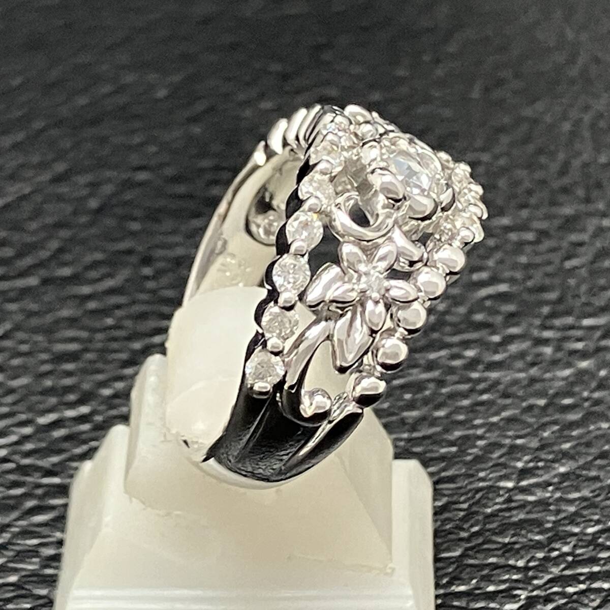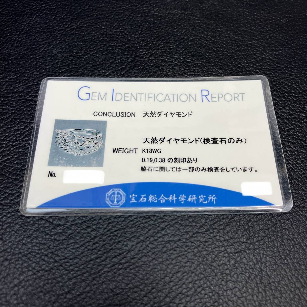 | 素材:K18WG 宝石名:天然ダイヤモンド0.19ct 0.38ct リングサイズ:約12号 リング幅:実寸 最小幅 約3mm~最大幅 約10.5mm 総重量:約7.8g 付属品:鑑別カード(宝石総合科学研究所) 状態:人の手に渡った中古品です。 新品仕上げ済ですが、デザインや刻印に支障がない程度の仕上げの為、深くて消しきれなかった擦り傷、打痕傷がございます。 予めご了承いただき、入札をお願い申し上げます。 肉眼ですぐに確認できるような石傷や石欠けは見受けられませんが、中古品ですので小さな石傷、石欠けがある場合がございます。 使用されているダイヤの質は鑑定書などの詳細明確な付属品がないため、当店では断定いたしかねます。 中古品であることをご理解いただいたうえで入札をお願い申し上げます。 その他:画像はスマートフォンによる撮影のため、実際の色と若干異なる場合がございます。 お使いのPC環境やスマートフォン端末などにより実際の色味と異なる場合もございます。 こちらのお品物は店頭と併売している為、 実際のお品物と状態の乖離がある場合がございます。 予めご了承ください。 ご不明な点はご入札前に「出品者への質問」からお問い合わせください。 お電話で店舗受け取り対象の店舗にお問い合わせいただいてもお答えできません。 予めご了承ください。 | ||||||
