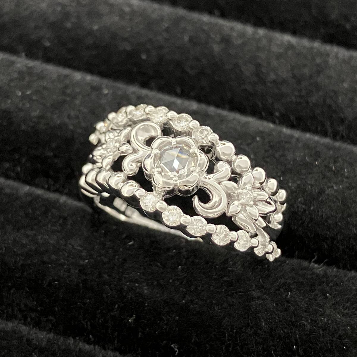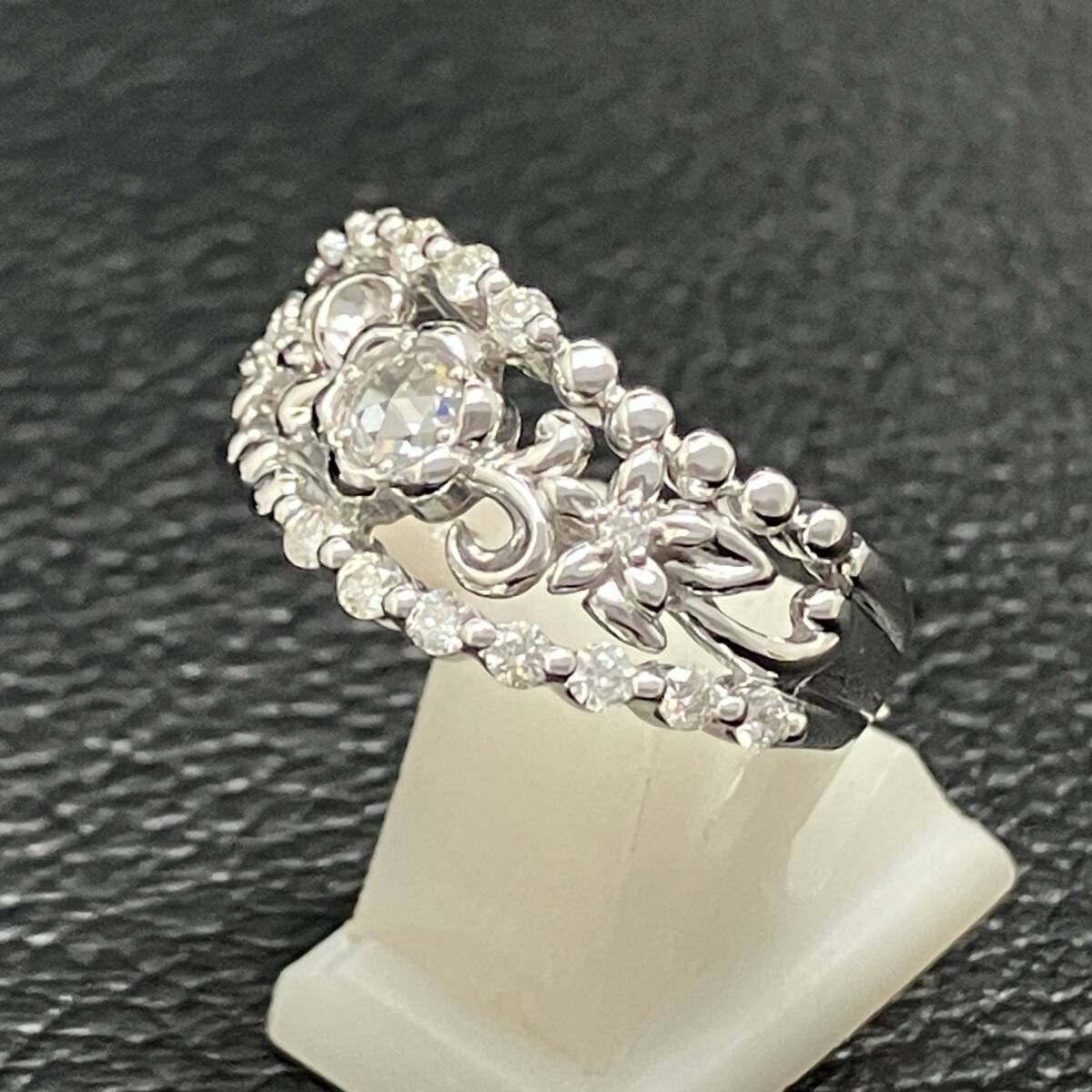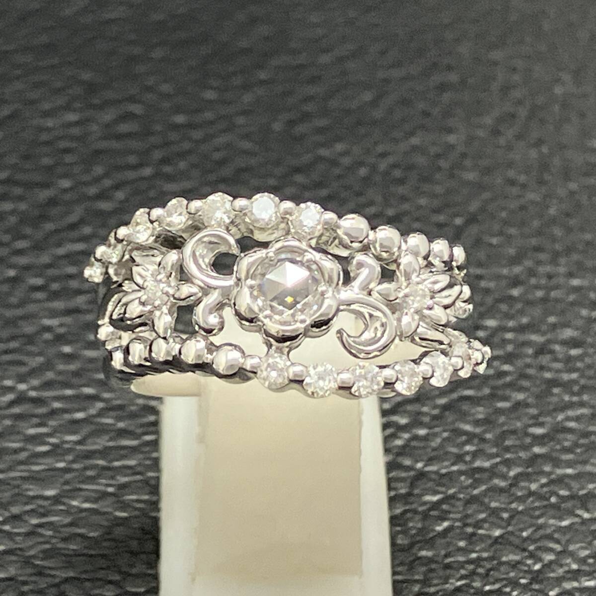 | 素材:K18WG 宝石名:天然ダイヤモンド0.19ct 0.38ct リングサイズ:約12号 リング幅:実寸 最小幅 約3mm~最大幅 約10.5mm 総重量:約7.8g 付属品:鑑別カード(宝石総合科学研究所) 状態:人の手に渡った中古品です。 新品仕上げ済ですが、デザインや刻印に支障がない程度の仕上げの為、深くて消しきれなかった擦り傷、打痕傷がございます。 予めご了承いただき、入札をお願い申し上げます。 肉眼ですぐに確認できるような石傷や石欠けは見受けられませんが、中古品ですので小さな石傷、石欠けがある場合がございます。 使用されているダイヤの質は鑑定書などの詳細明確な付属品がないため、当店では断定いたしかねます。 中古品であることをご理解いただいたうえで入札をお願い申し上げます。 その他:画像はスマートフォンによる撮影のため、実際の色と若干異なる場合がございます。 お使いのPC環境やスマートフォン端末などにより実際の色味と異なる場合もございます。 こちらのお品物は店頭と併売している為、 実際のお品物と状態の乖離がある場合がございます。 予めご了承ください。 ご不明な点はご入札前に「出品者への質問」からお問い合わせください。 お電話で店舗受け取り対象の店舗にお問い合わせいただいてもお答えできません。 予めご了承ください。 | ||||||