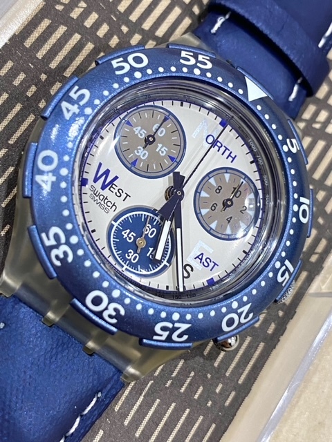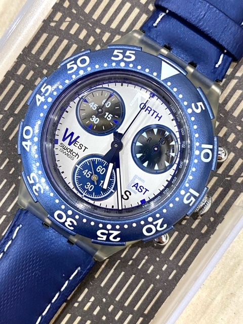 電池交換済 稼動品 美品 swatch スウォッチ Aqua chrono クロノ MID size WATER RESISTANT 腕時計 548 QZ クォーツ 回転ベゼル | |||