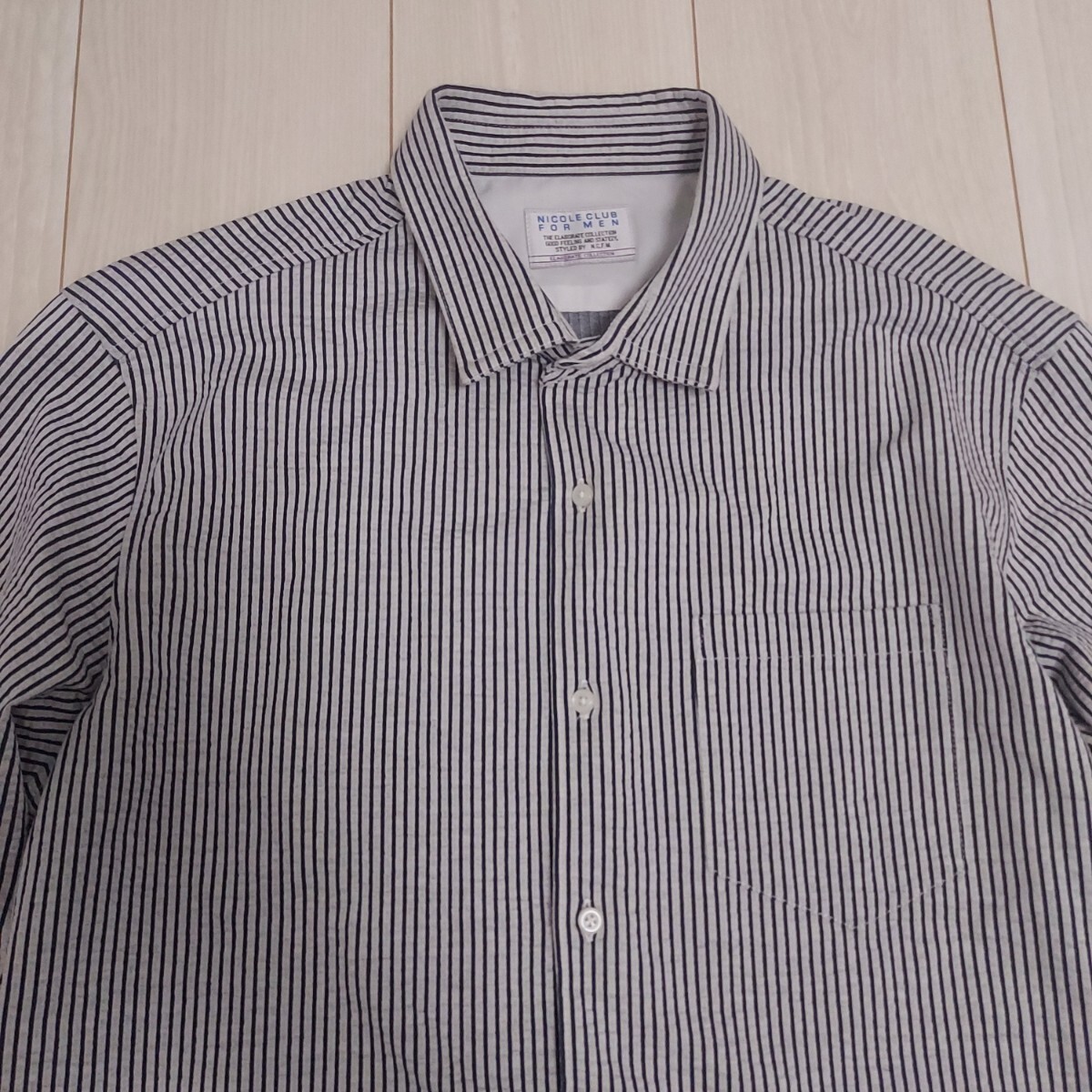 ニコルクラブフォーメンのシアサッカー長袖ストライプシャツ。