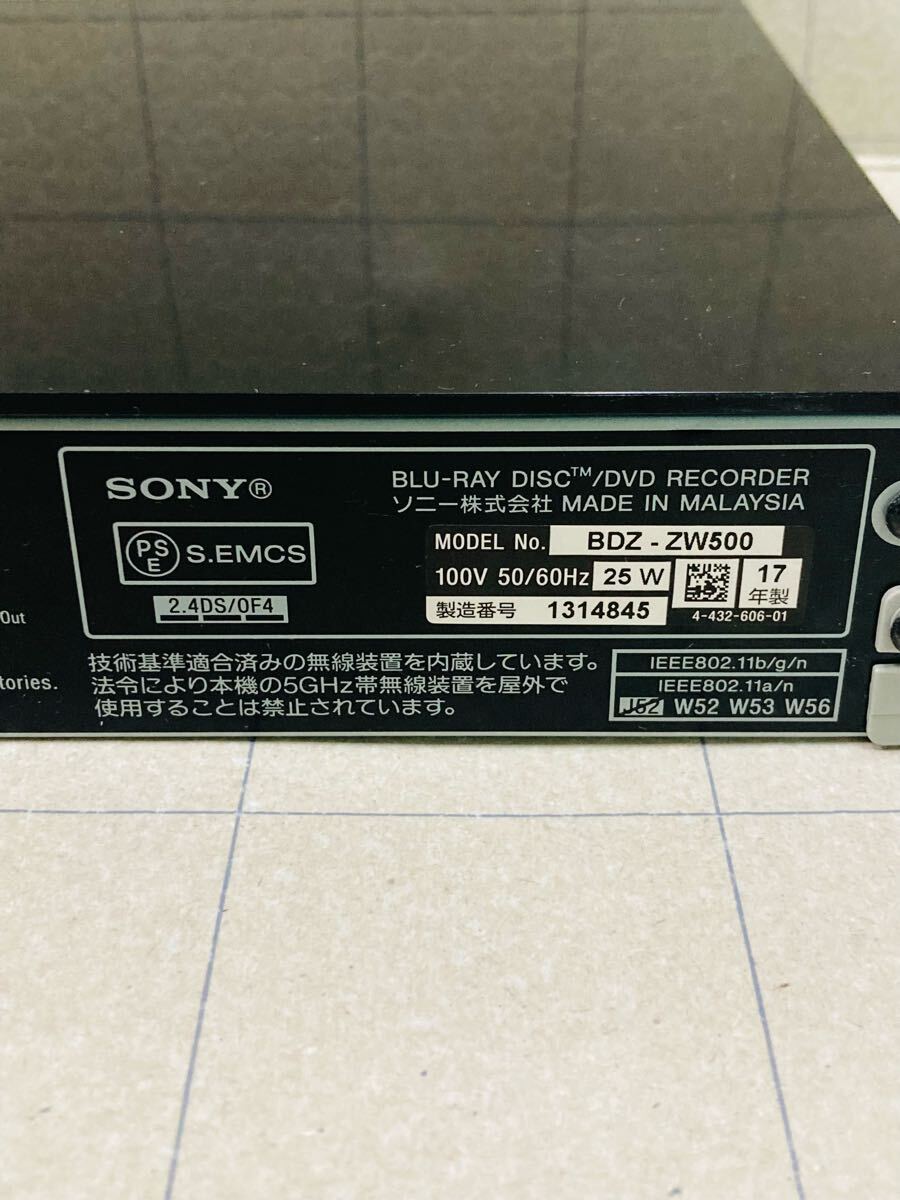 ☆ SONY BDZ-ZW500 2017年製 ソニー ブルーレイディスクレコーダー DVDレコーダー リモコン有 電源コード有 映像機器 通電のみ確認済 になります。