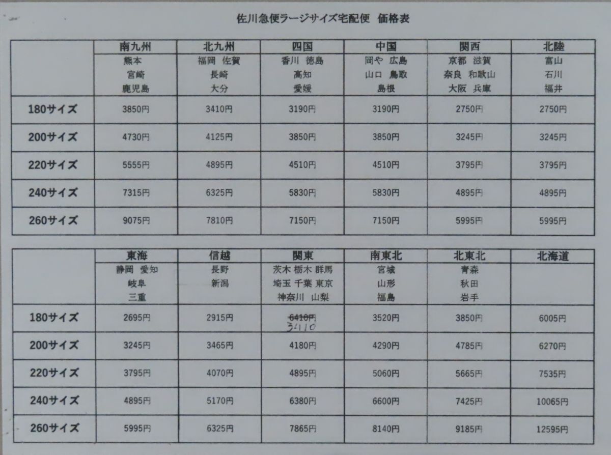 料金表をご覧ください。(落札後お客様地域の料金をお知らせします。)