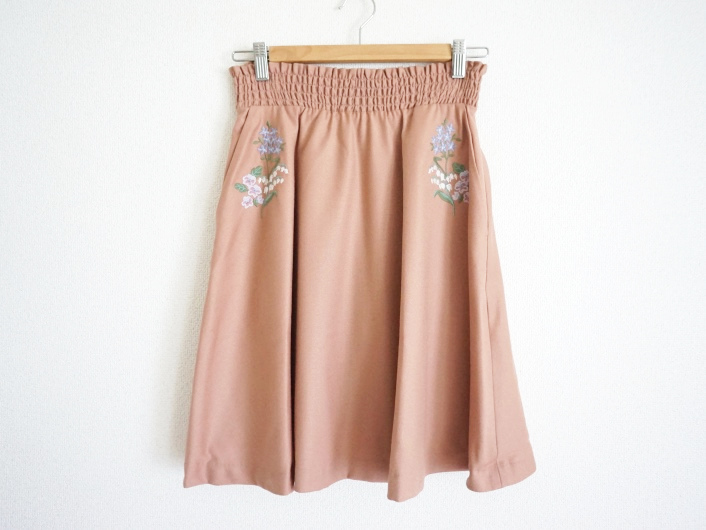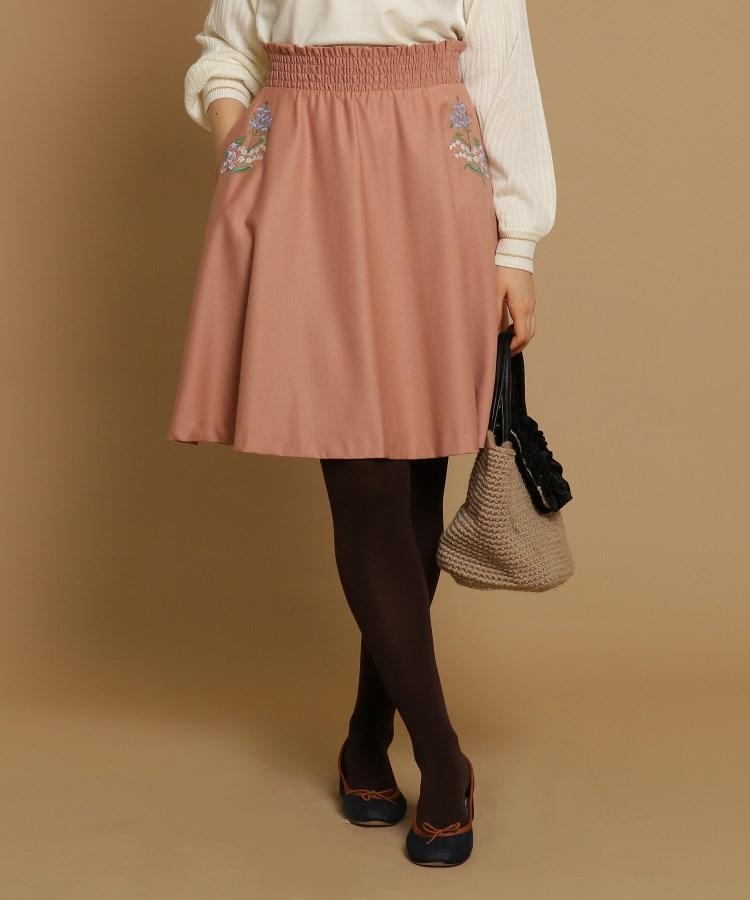 | 公式HPより | 両サイドの鮮やかなお花の刺しゅうが目を引くフレアスカート。幅広にとったウエストギャザーはガーリーなイメージを印象付けます。光沢があるジョーゼット素材はやや伸縮性もあってやわらか。起毛感がシーズナルな気分を盛り上げます。 ※ポケット総数:ポケット×2 |