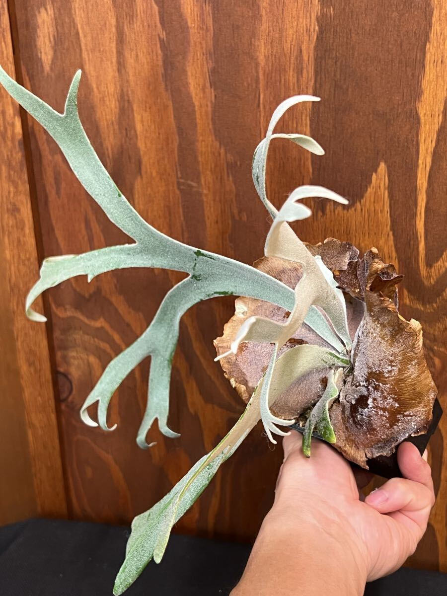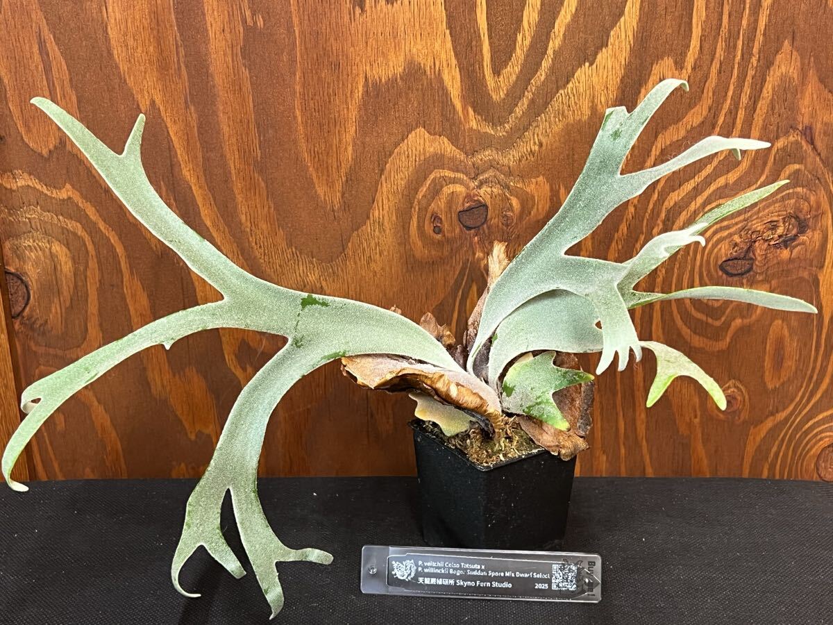 P. willinckii Bogor Suddan のスポアからドワーフとしてセレクトされた株です。親株の胞子葉はとても白く分厚いです。全体のシルエットはアジサイのようです。また、胞子葉が長く伸びているのも特徴的です。