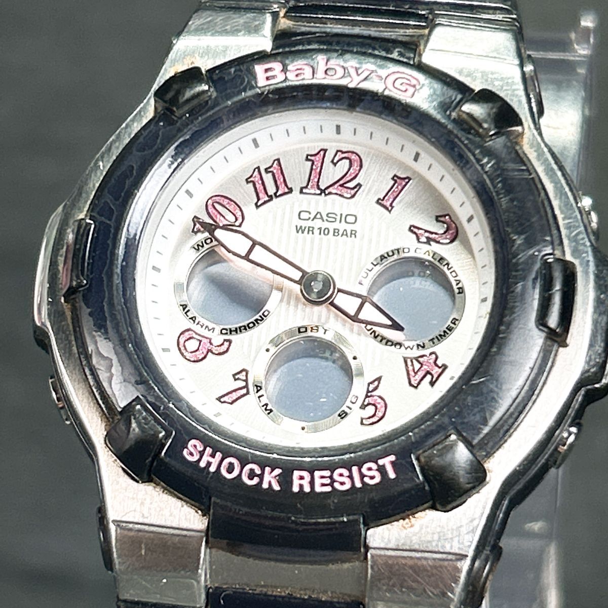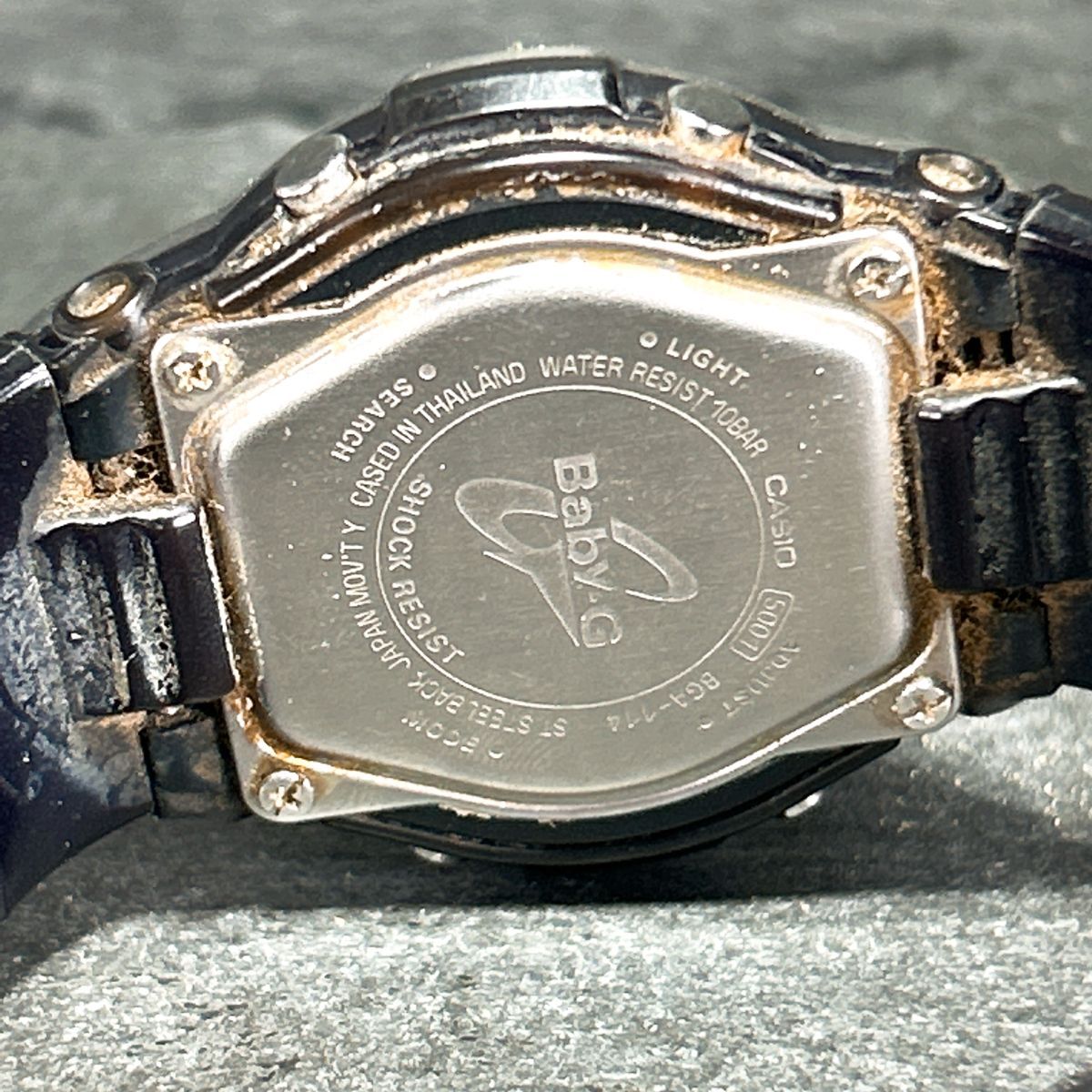 CASIO カシオ Baby-G ベビージー BGA-114 腕時計 クオーツ アナデジ 多機能 ステンレススチール ラウンド ホワイト文字盤 ネイビー