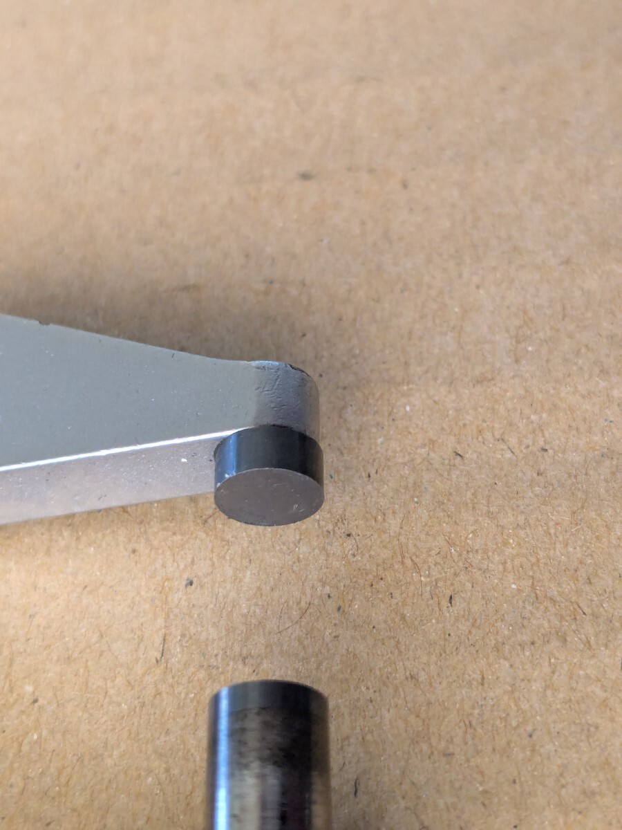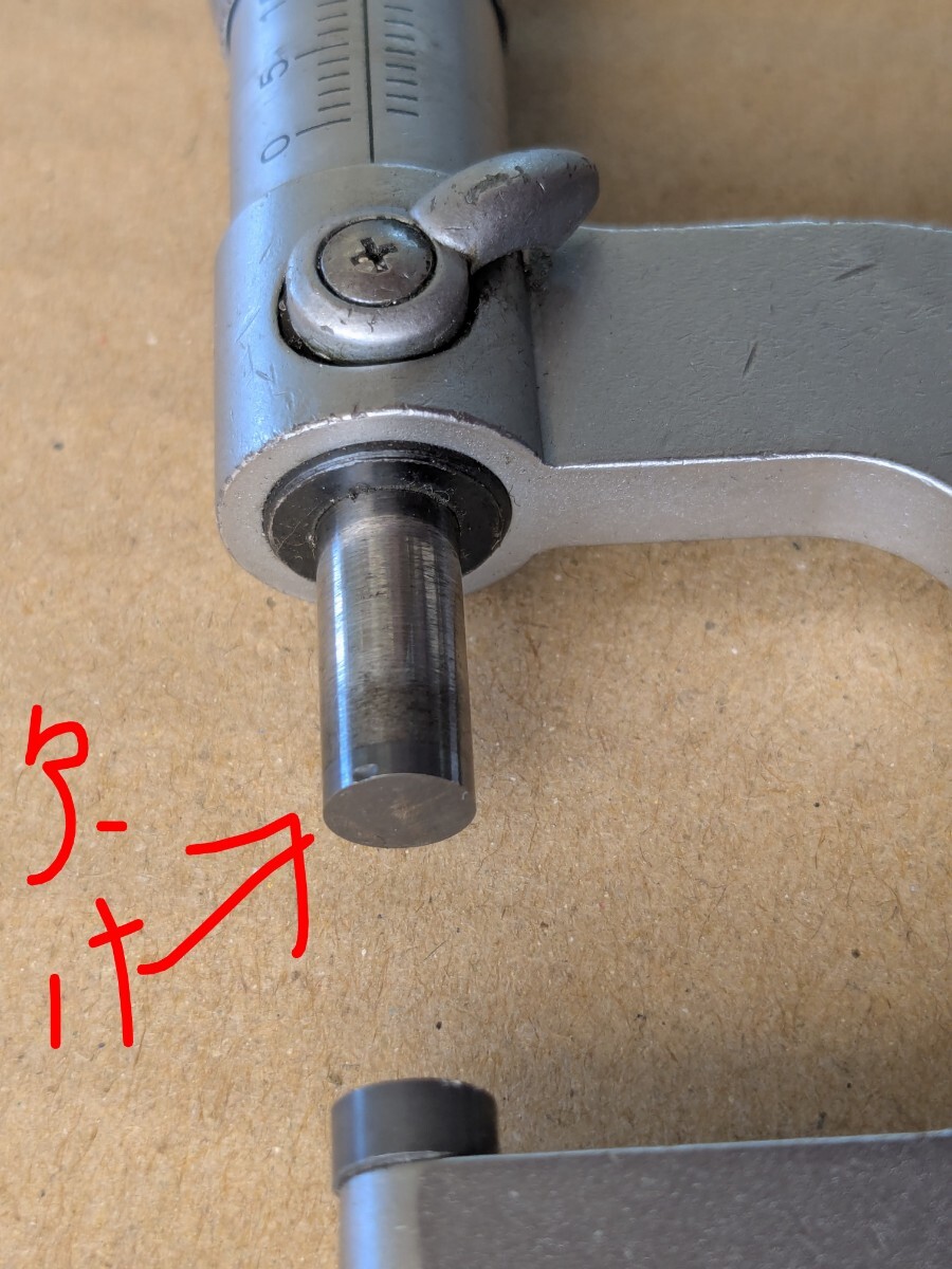 スピンドル側の測定面の超硬が少し欠けていますので矢印部ご確認ください。