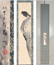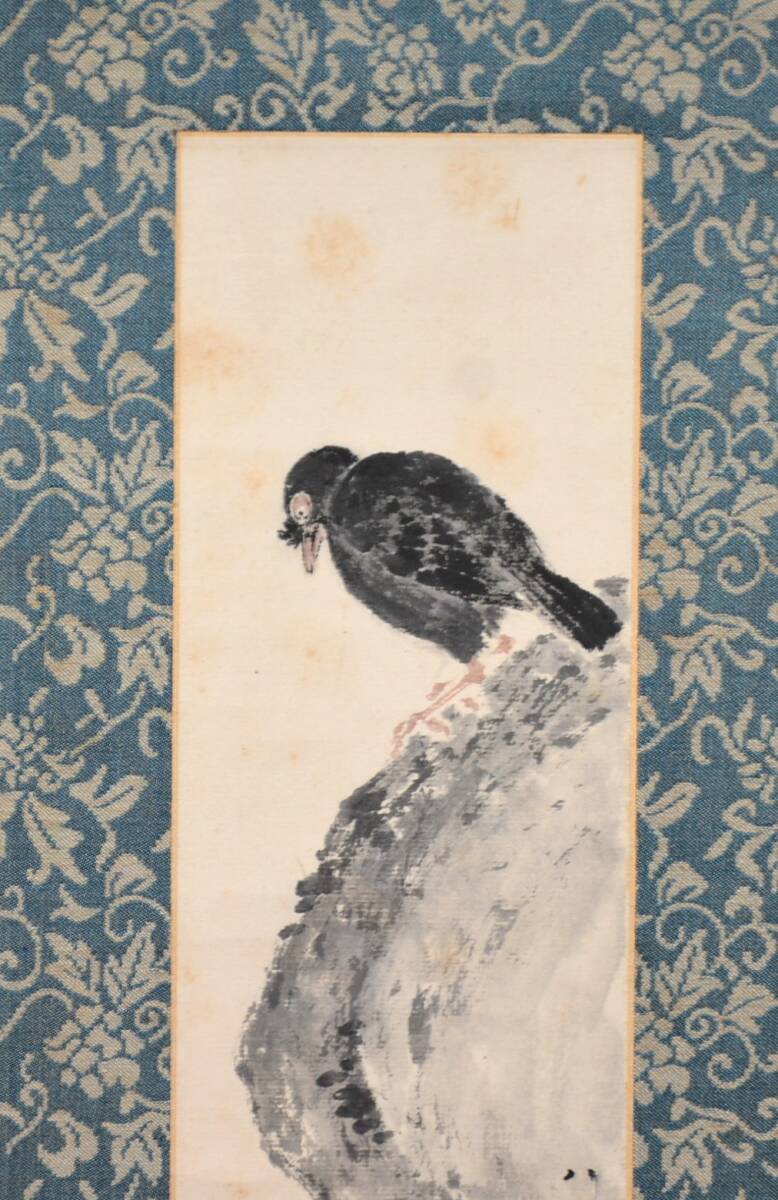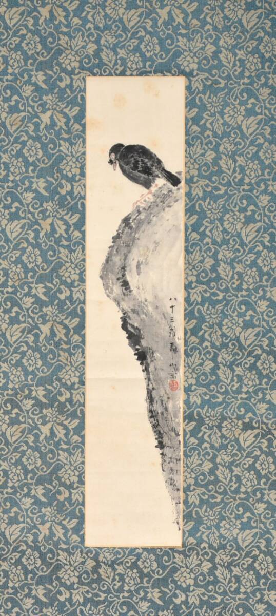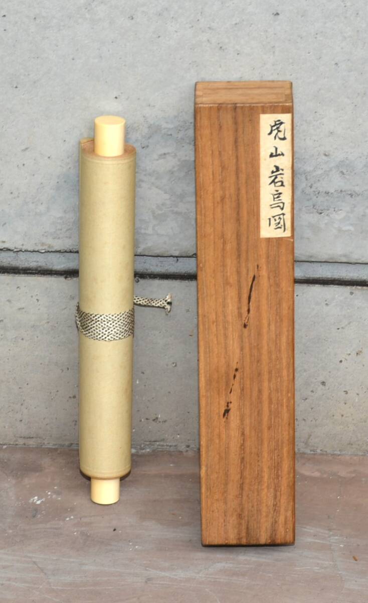 23◆初荷です ◆掛軸 甲斐虎山 八十三才 小品 岩鳥図 真作 紙本 ◆保存箱 京都女子大学創設