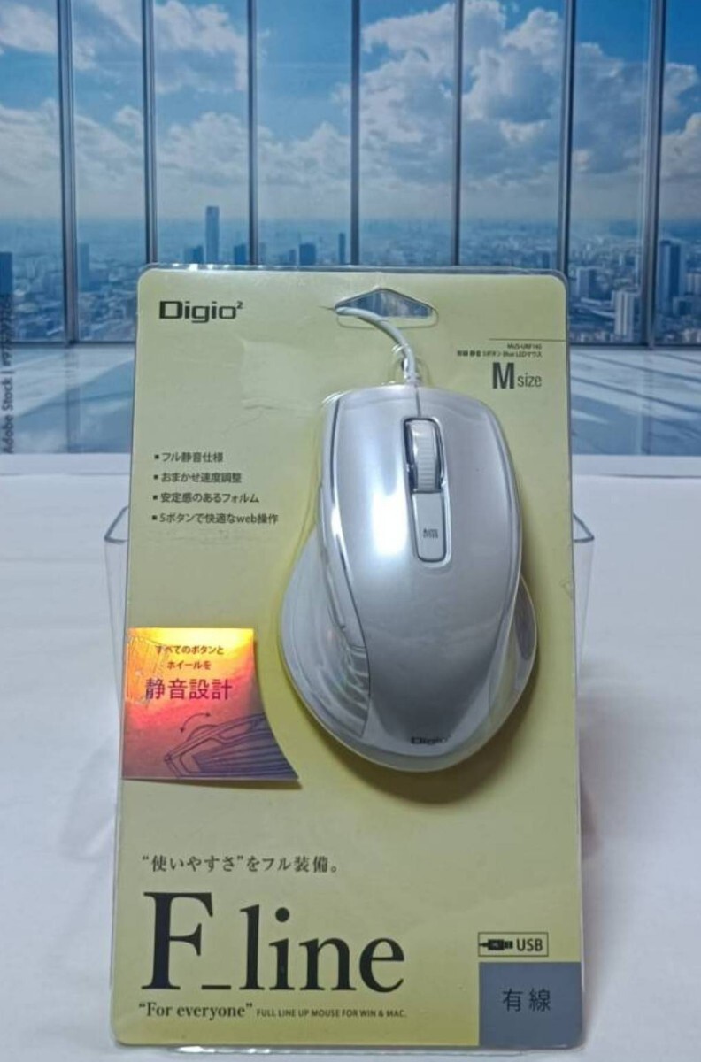 Digio デジオ F_line 有線静音5ボタン BlueLEDマウス Mサイズ ホワイト MUS-UKF148W 未開封品