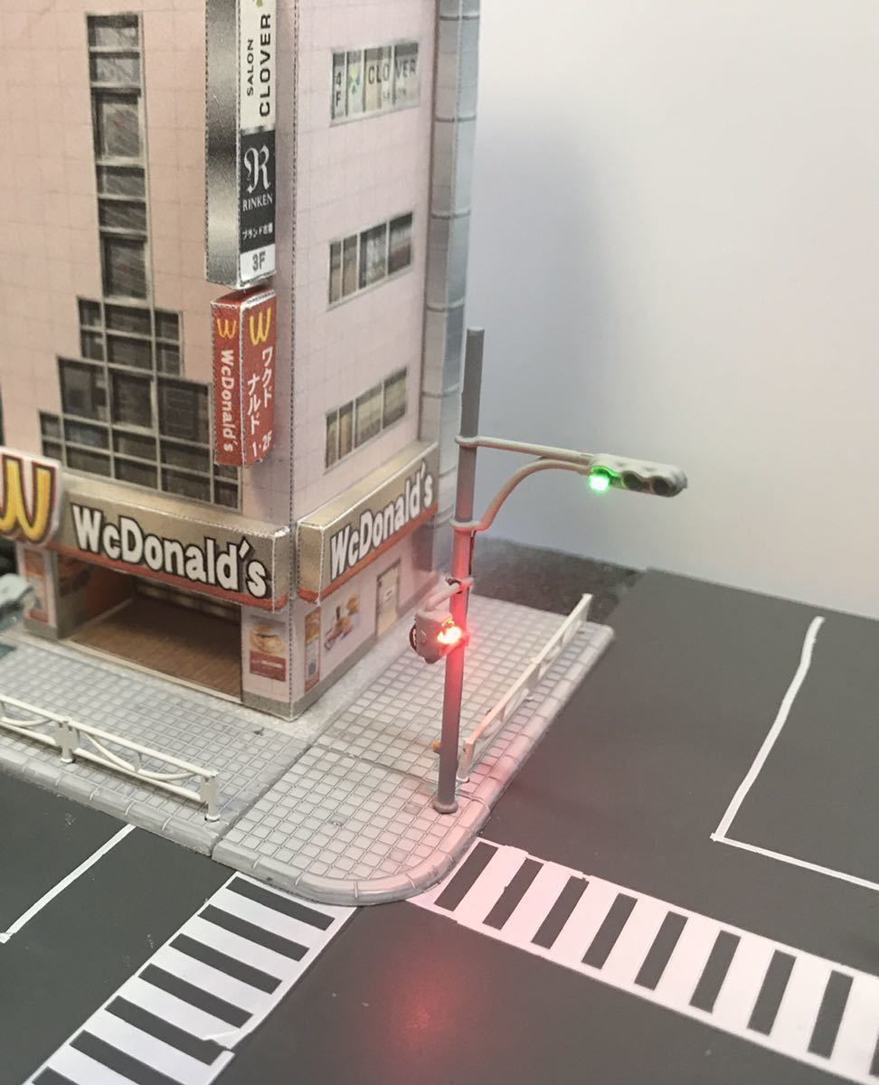 ジオコレ ベースでLEDで点灯します。歩行者信号を加工して向きを変えてあります。