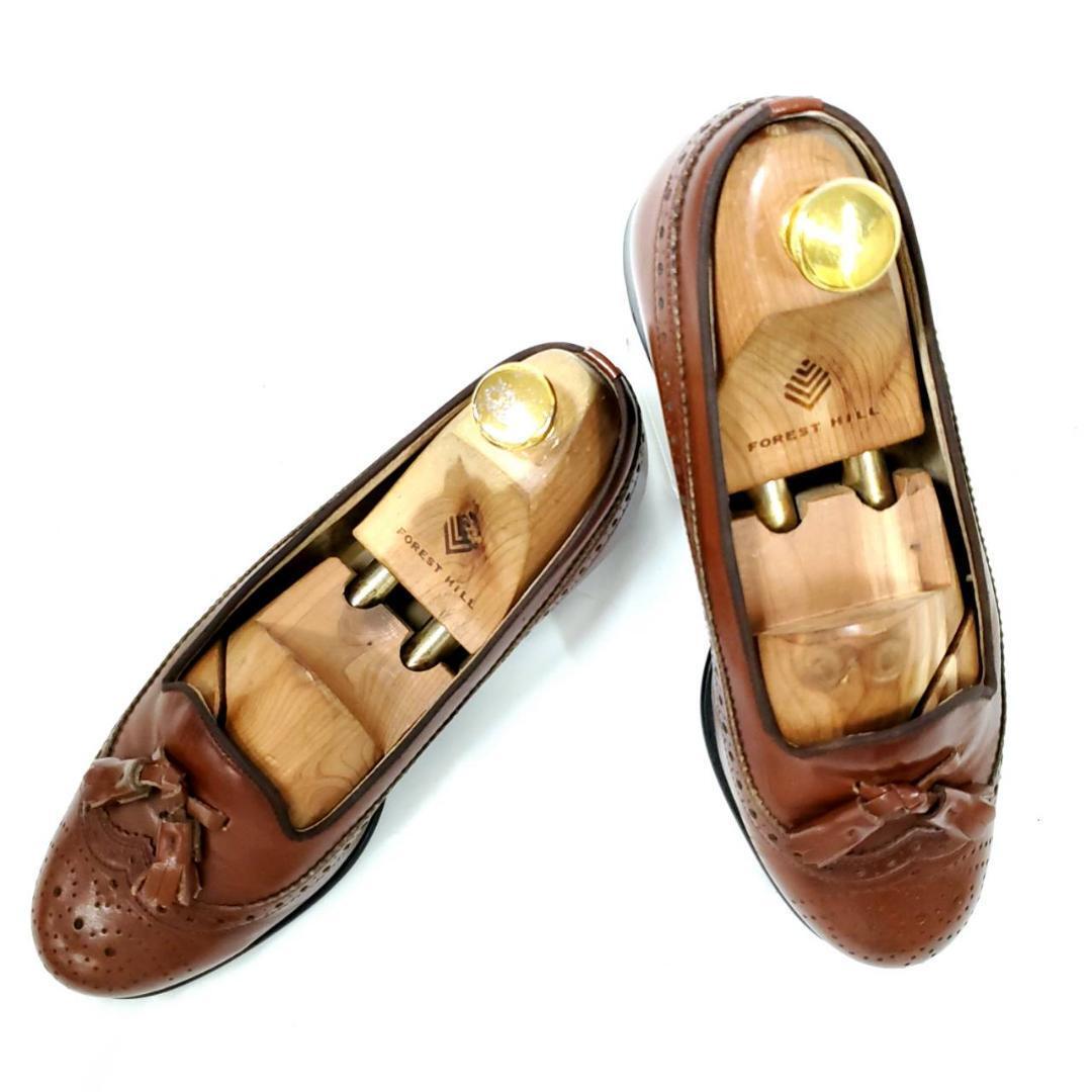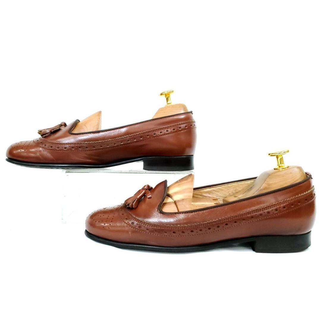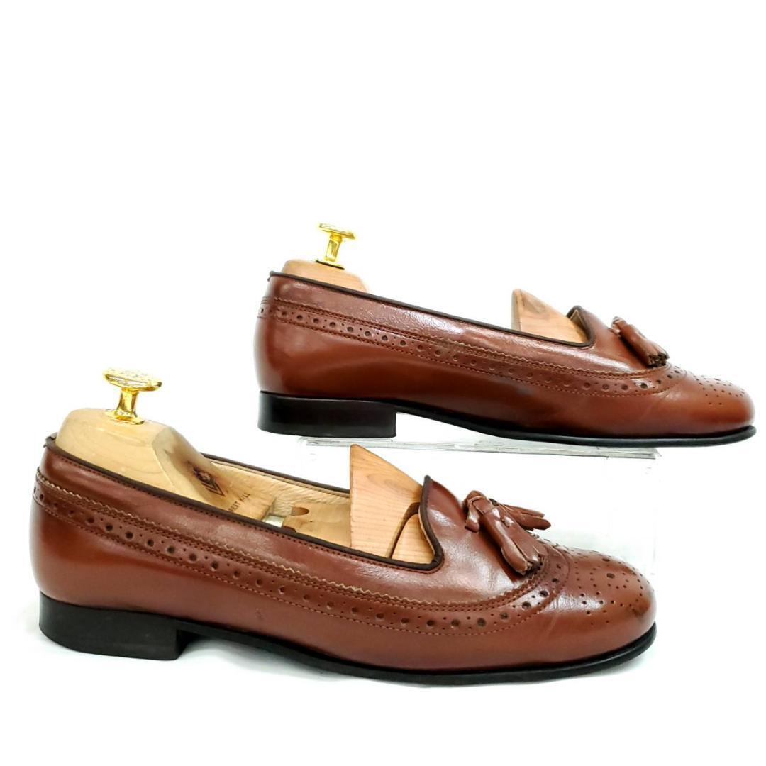 高級感あるブラウンの本革に、繊細なブローグ(穴飾り)とフロントのタッセルが映える、クラシックなデザインが魅力の一足。