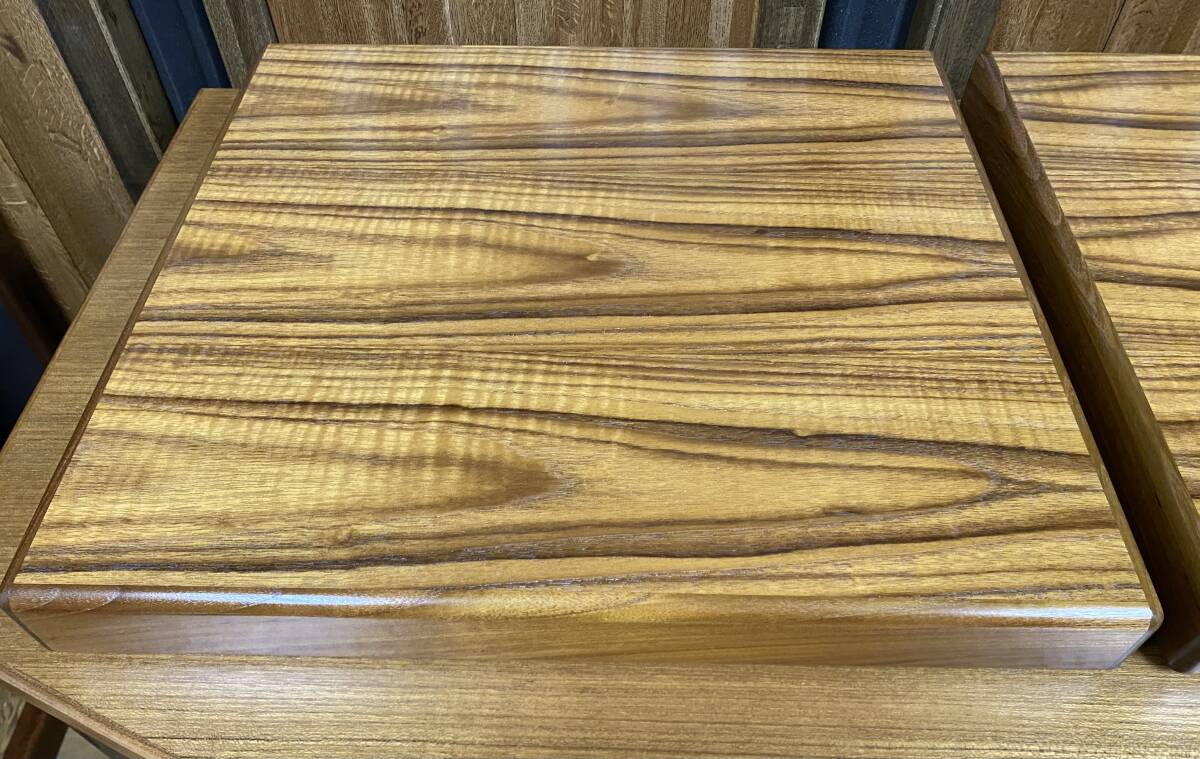 また薄い突板とはいえ4枚使用、更に横手材は無垢材ですのでチークの特徴である甘い音色も乗っています。