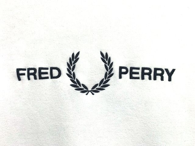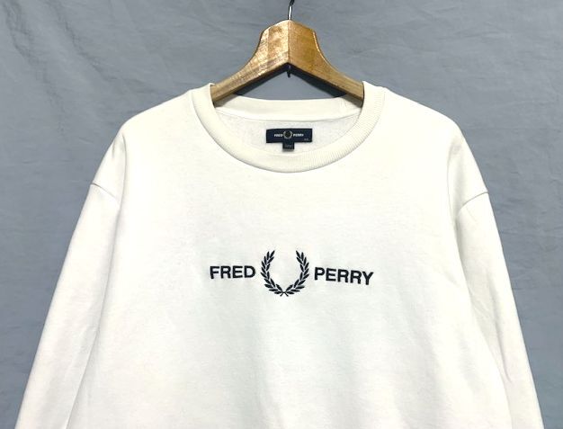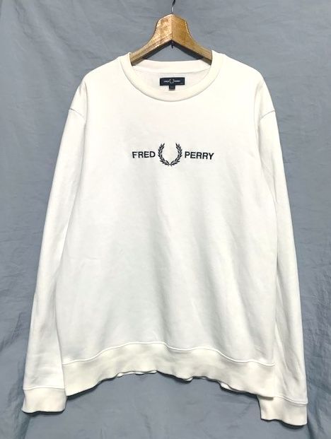 ★美品 FRED PERRY フレッドペリー Graphic Sweatshirt ロゴ刺繍 裏起毛クルーネックスウェット ホワイト XXL