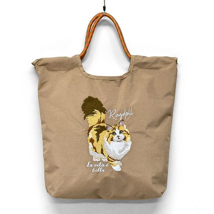 アニマル刺繍 コード トートバッグ (ベージュ ラグドール) トート ショルダーバッグ ネコ 猫 キャット 刺繍 バッグ