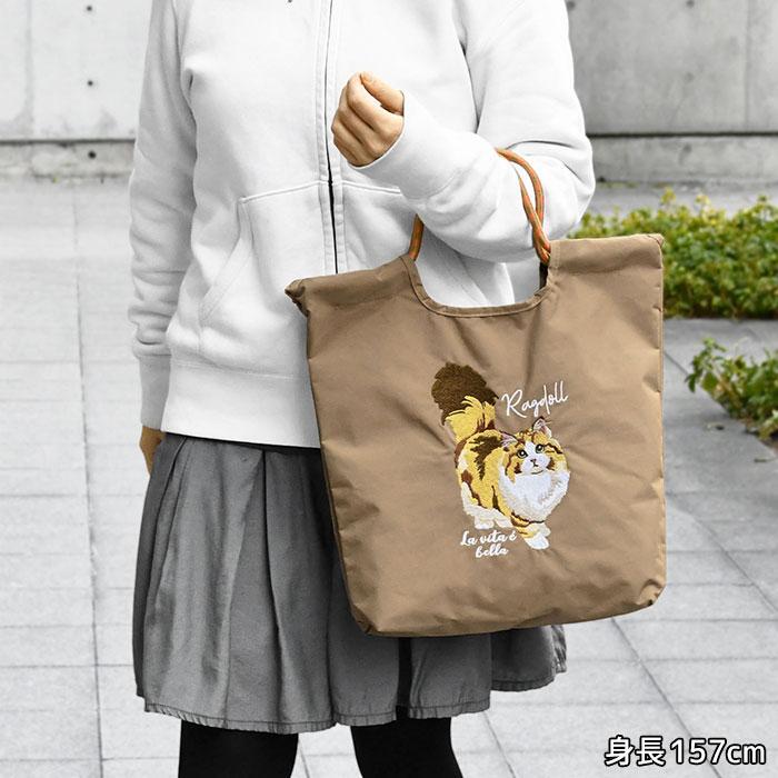 愛らしいラグドールの刺繍がポイントのトートバッグです。