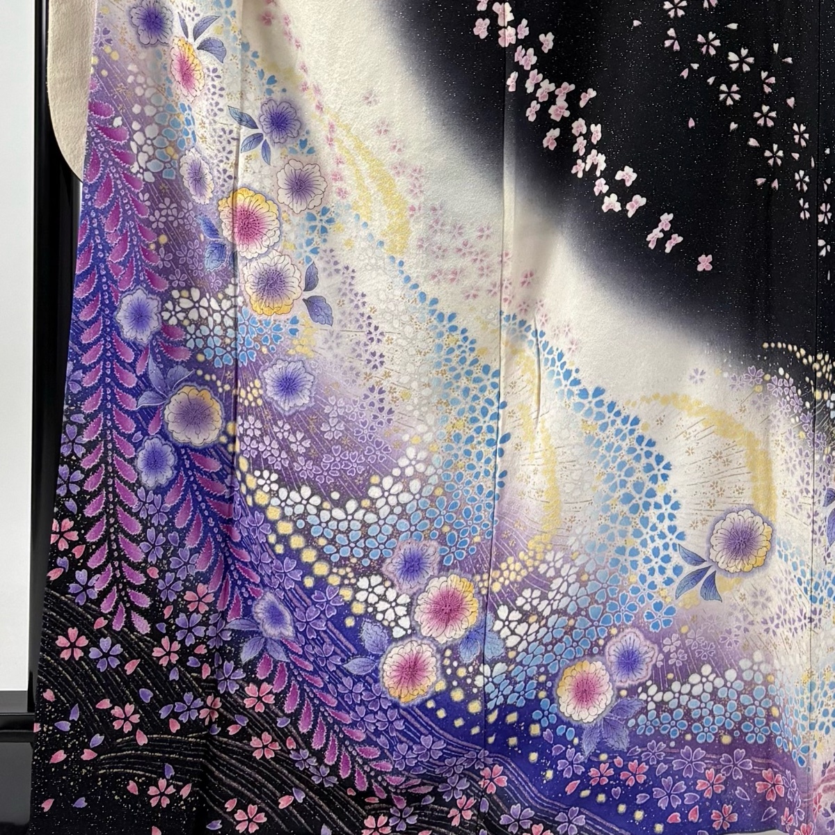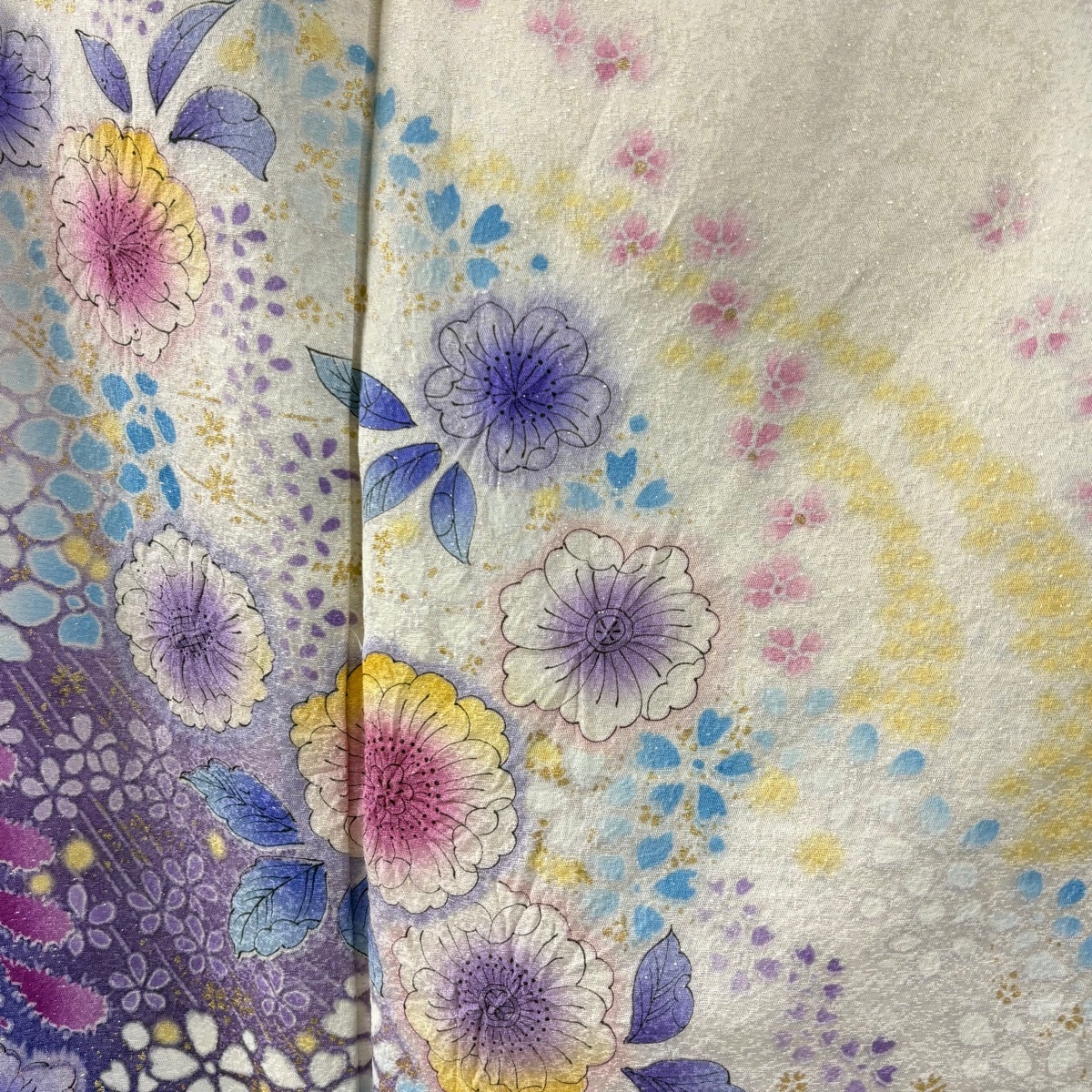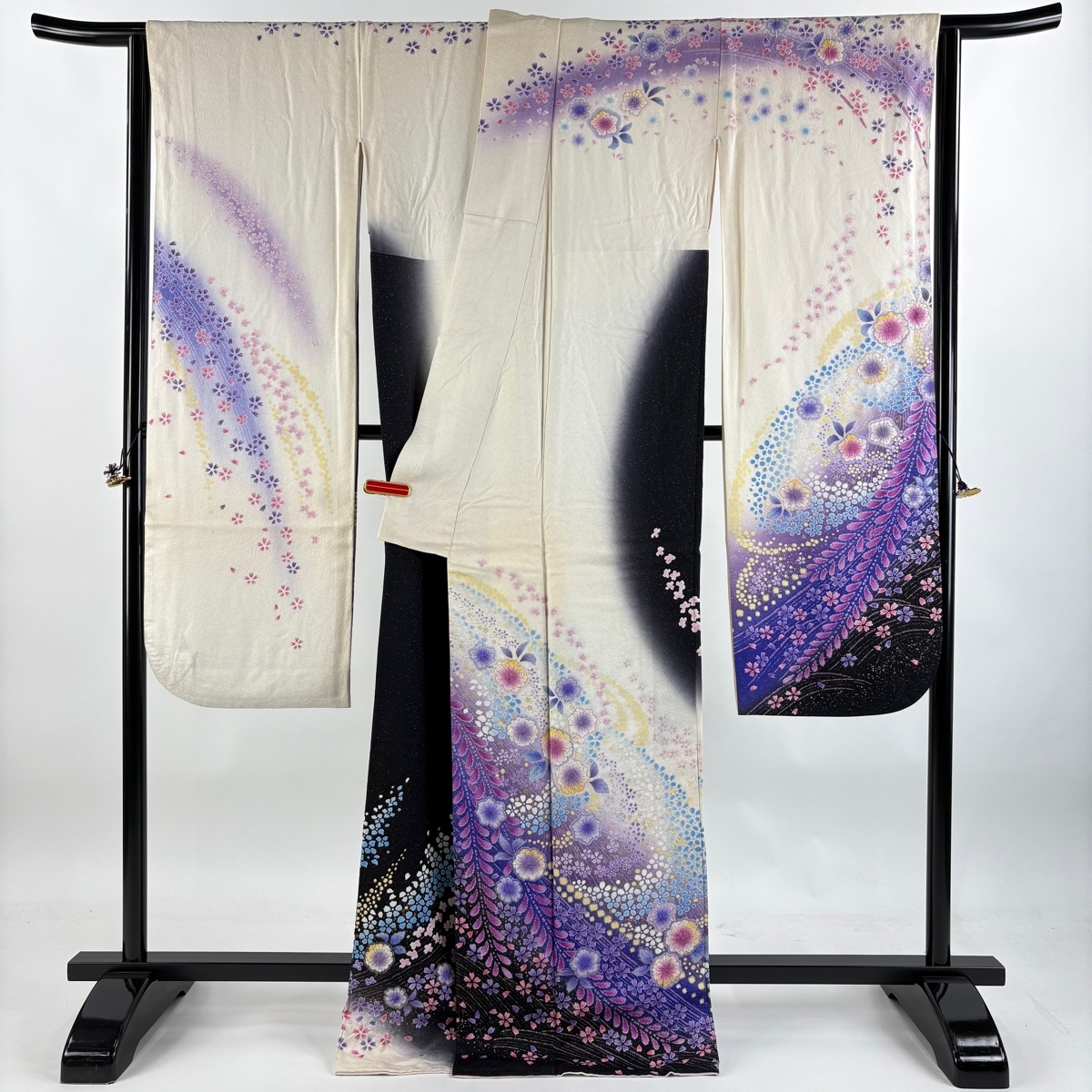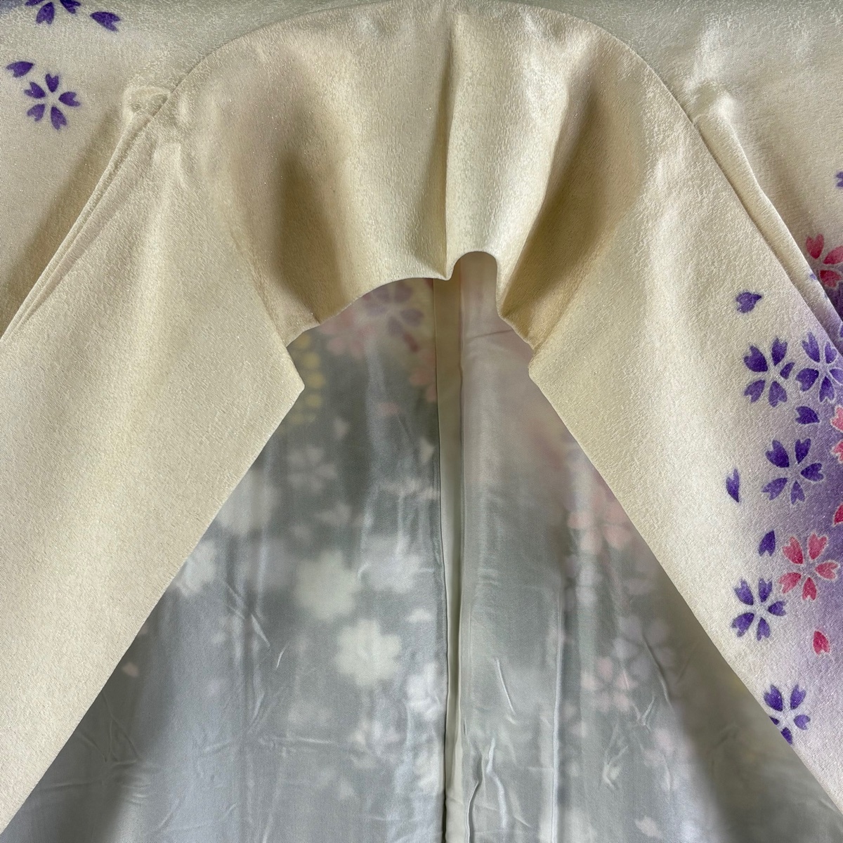 | 振袖 逸品 辻が花 桜 銀通し 金彩 クリーム 袷 身丈168 裄丈68.5 L 正絹 【中古】 |
