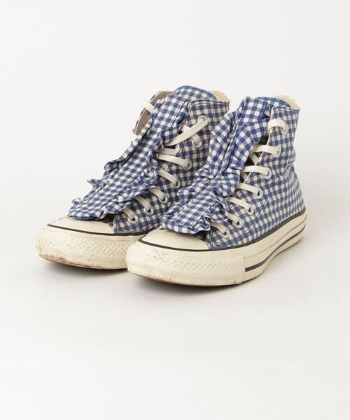 「CONVERSE」 チェック柄ハイカットスニーカー 24cm ブルー レディース