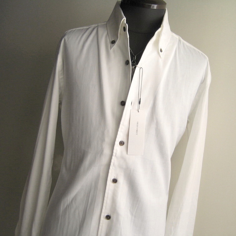 1.7万 新品 M ハイストリート ヘリンボンストライプBDシャツ長袖 ホワイト サンプル 送料無料 393