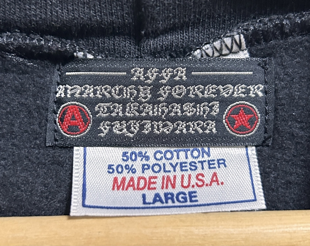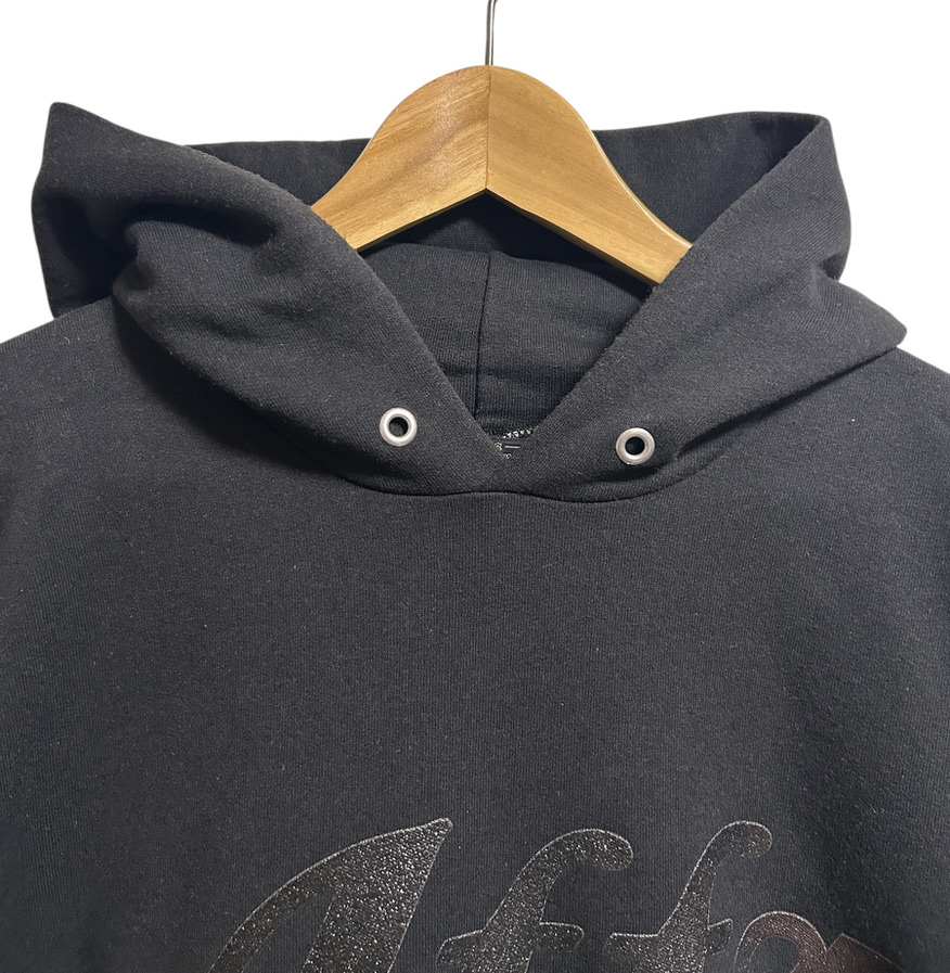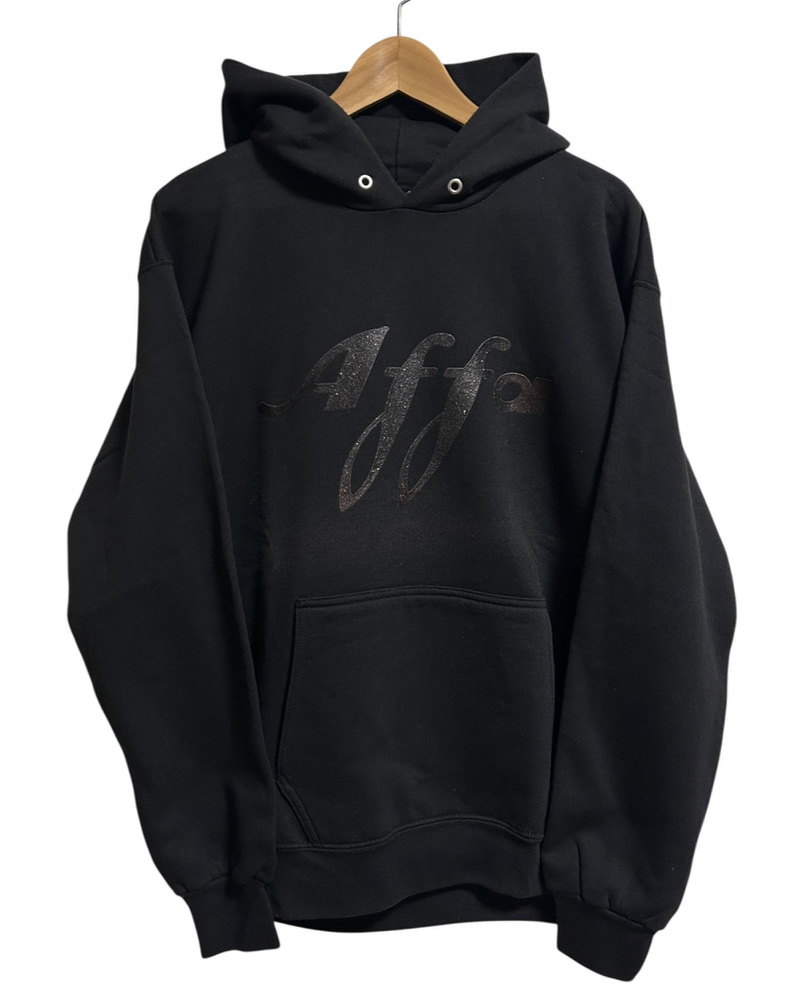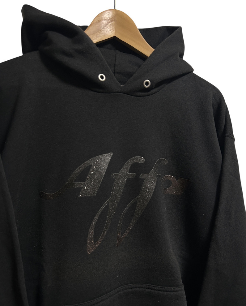 希少▽AFFA ラメプリント ロゴ パーカー スウェット L 黒 ブラック USA製 ASSEMBLE 藤原ヒロシ 高橋盾 フードプリント