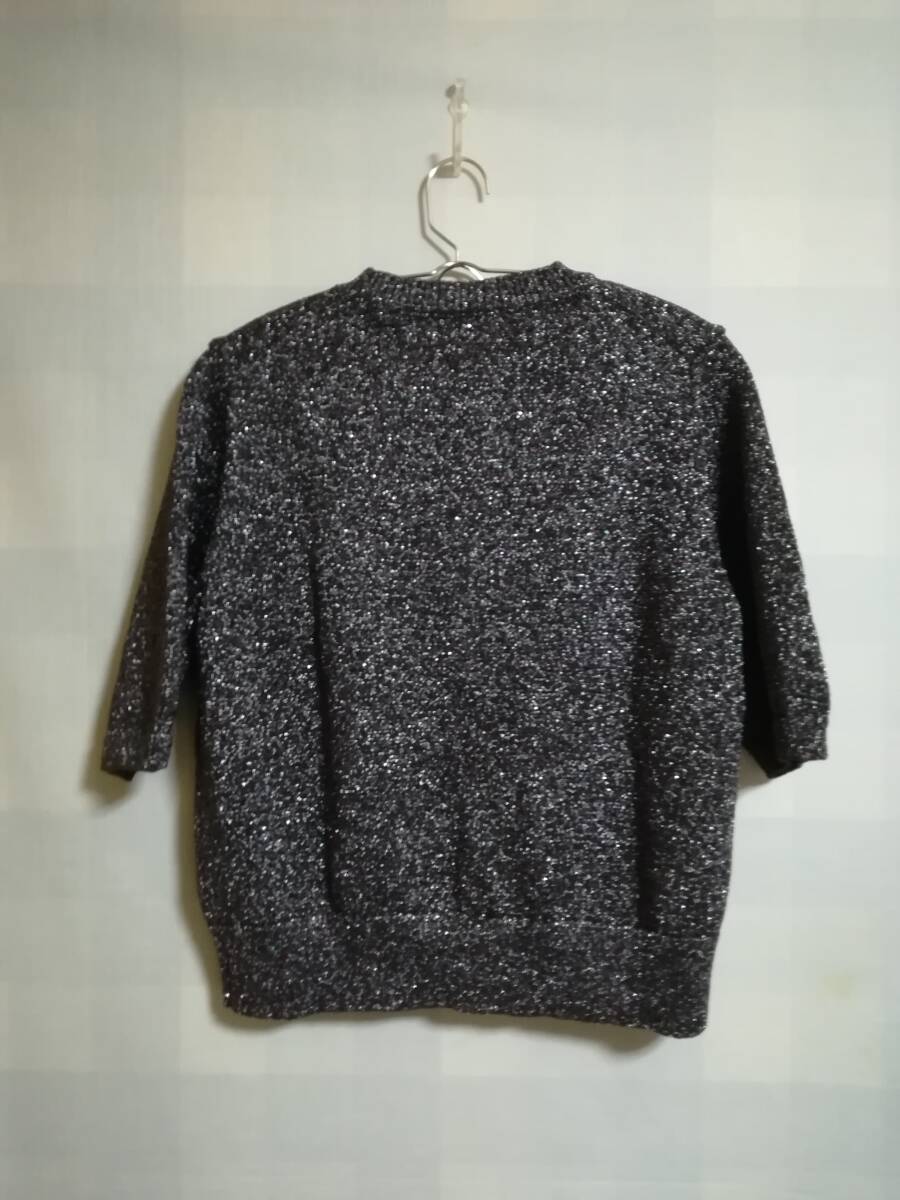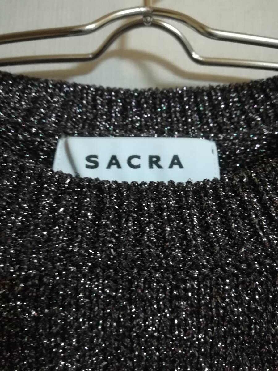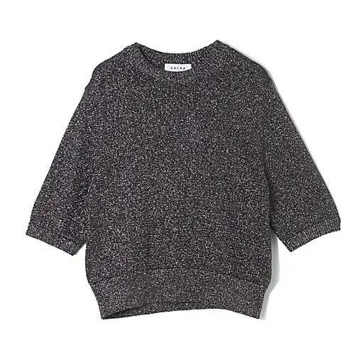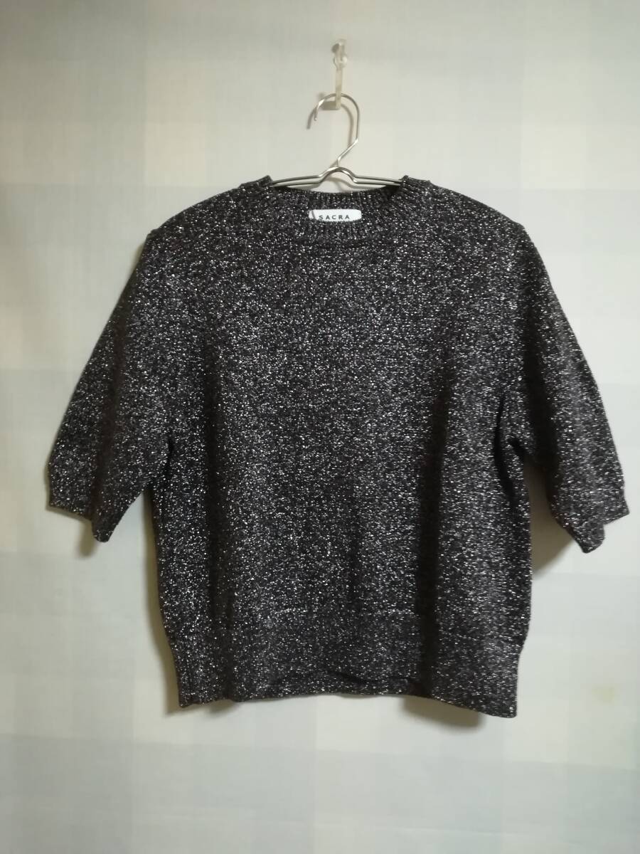 SACRA 24AW 五分袖ラメニット GLOSSY LILY プルオーバー チャコールグレー サイズ38