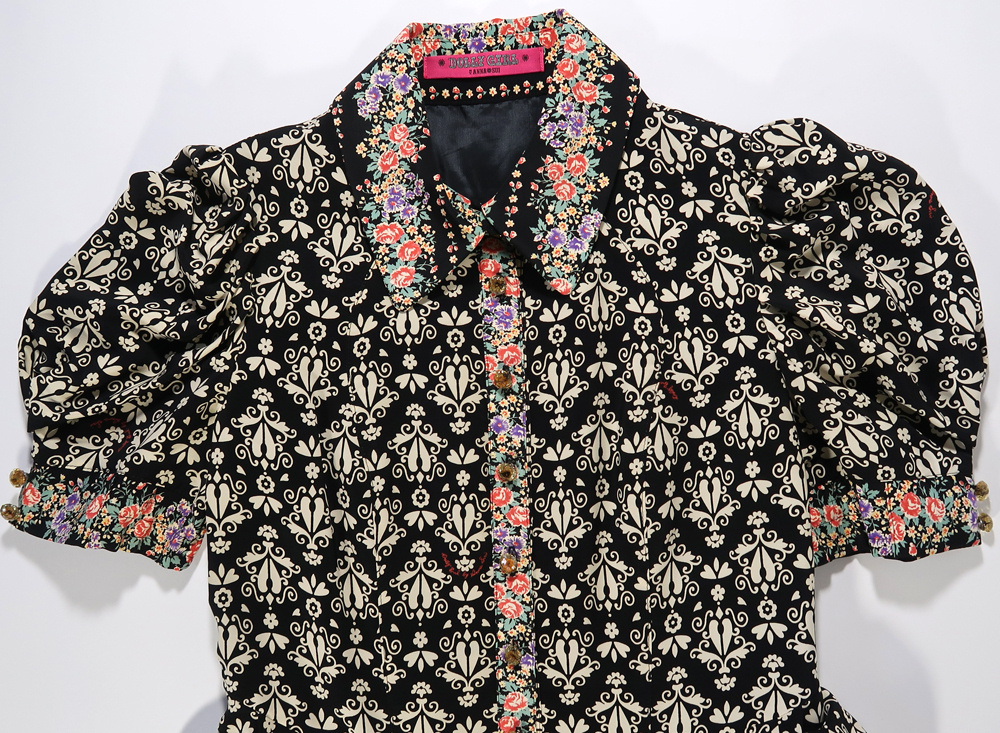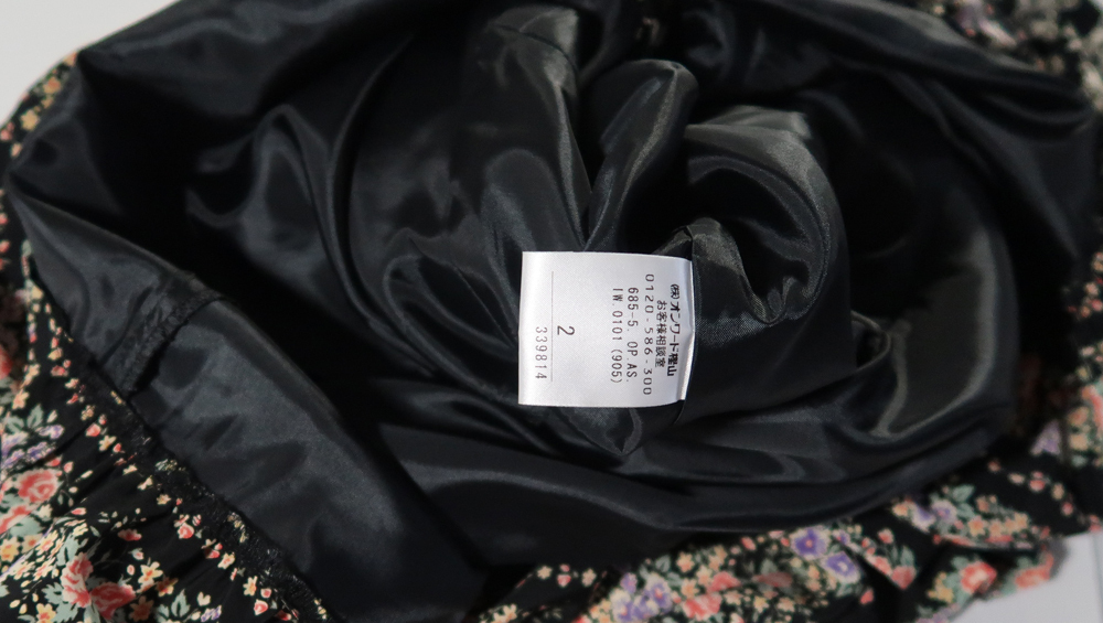 使用品ですので多少の汚れや擦れはるかと思います。私が見る限りはひどい傷や目立つような汚れは無かったです。クリアーボタンの中はたぶんドライフラワーが入っているような感じですが、本当の花かわかりません。生地は表地がポリエステル100%、裏地もポリエステル100%です。サイズは着丈が83cmくらい、肩幅は32cmくらい、身幅は43cmくらいです。袖丈は32cmくらいです。型の部分に膨らみがあるので肩幅や袖丈は正確ではないです。ベルトの長さは160cm位です。