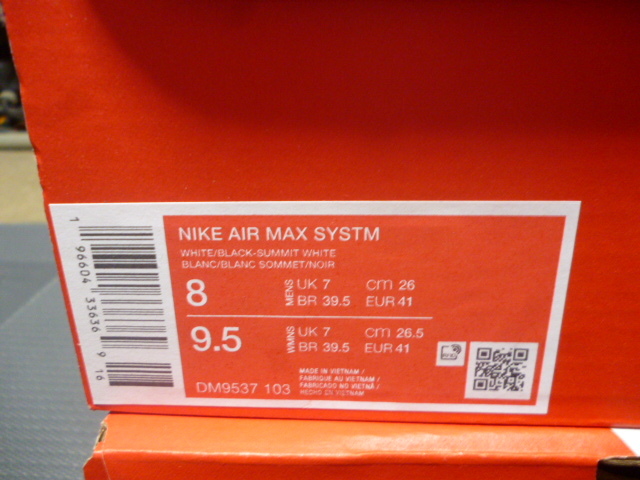 半額以下即決!NIKE AIR MAX SYSTM 白/黒 103カラー 26.0cm 新品